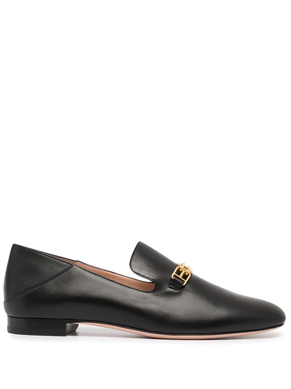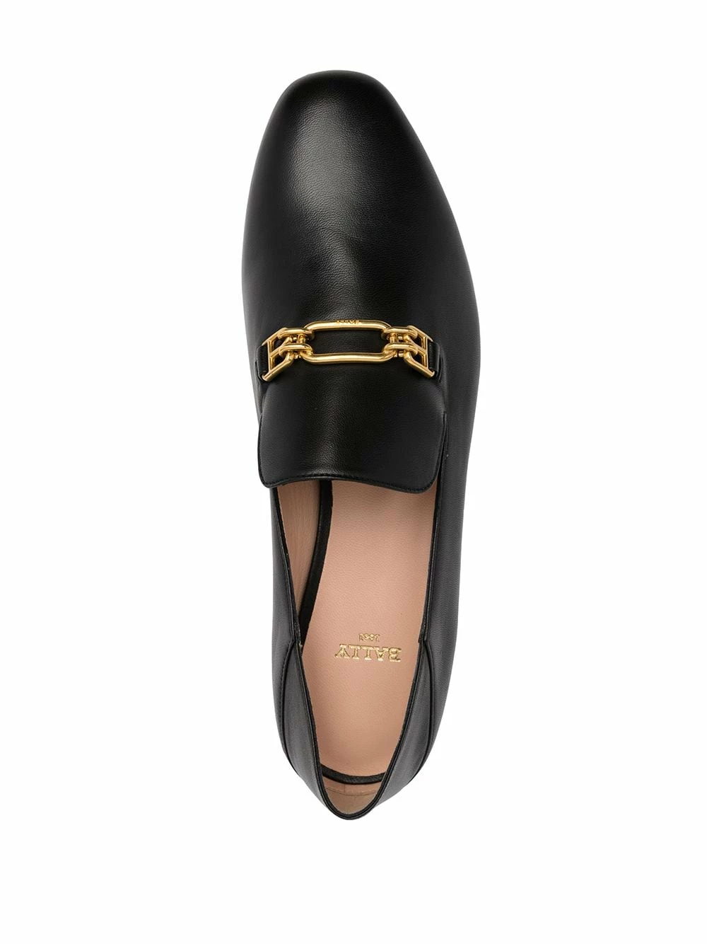 Maille cheval, semelle intérieure à logo, bout rond, semelle plate. Couleur : noir. Matière : cuir.