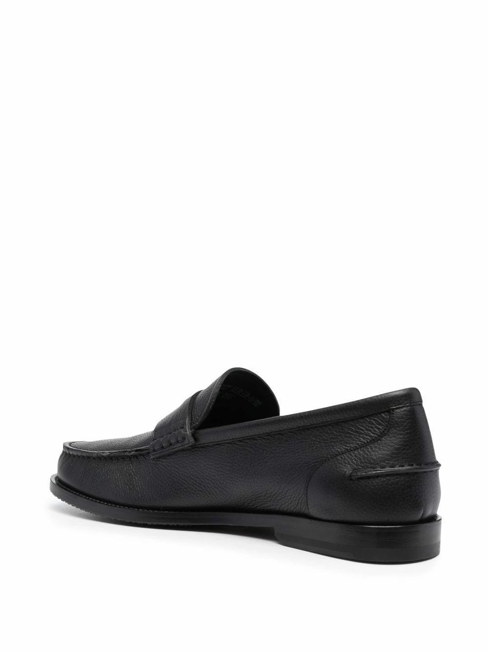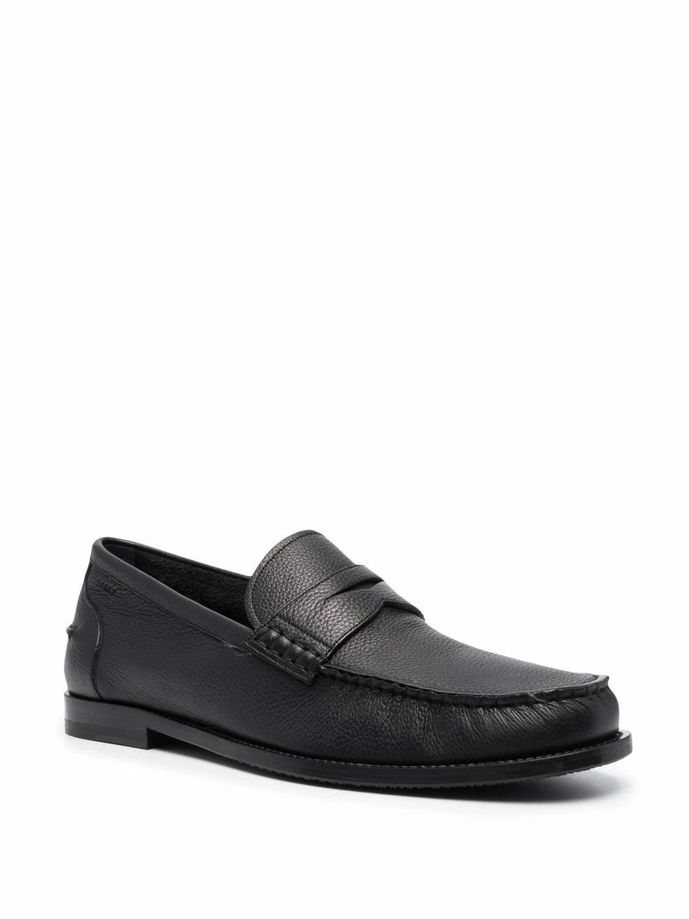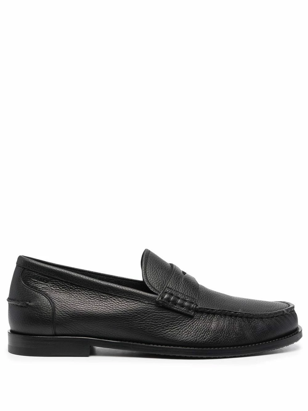 Bout en amande, entaille penny, design à enfiler, semelle à épaisseurs superposées. Couleur : noir. Matière : cuir de veau.