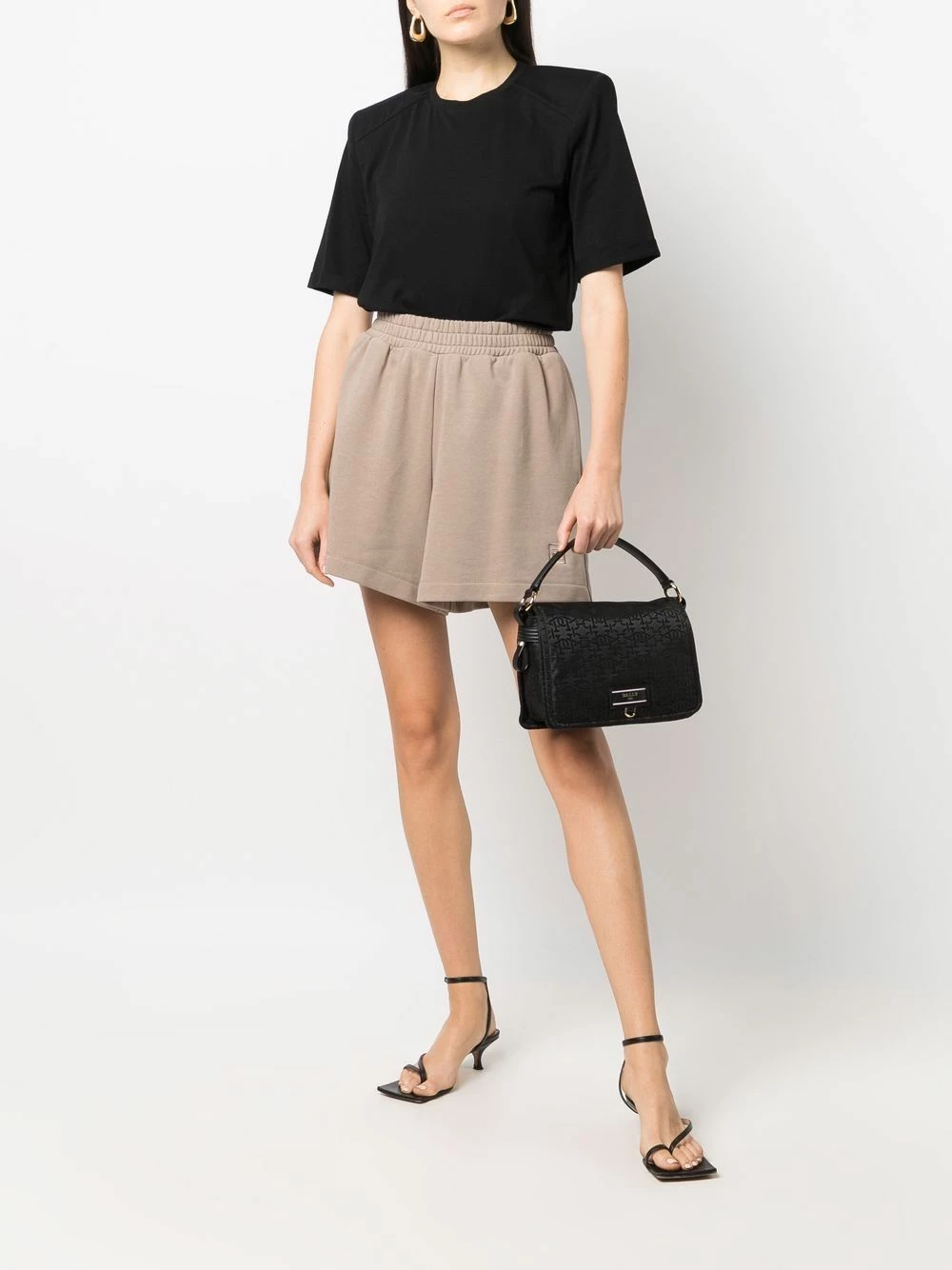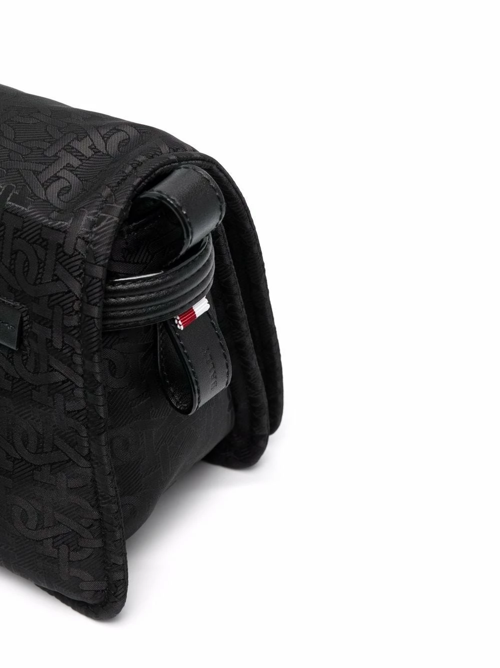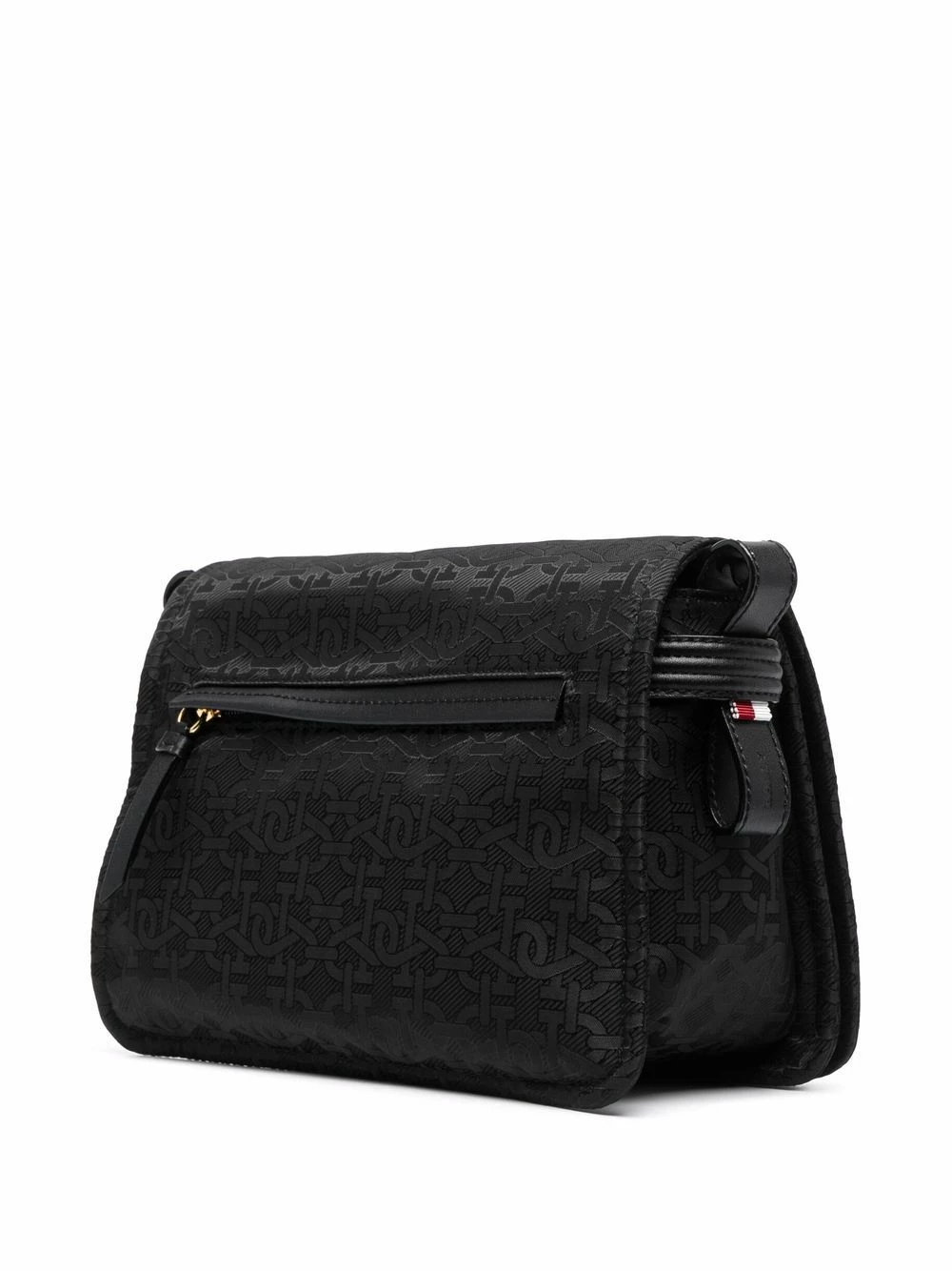 Motif monogrammé, patch logo sur le devant, rabat sur le dessus, poche arrière zippée, poches intérieures zippées, bride porté épaule ajustable. Couleur : noir.