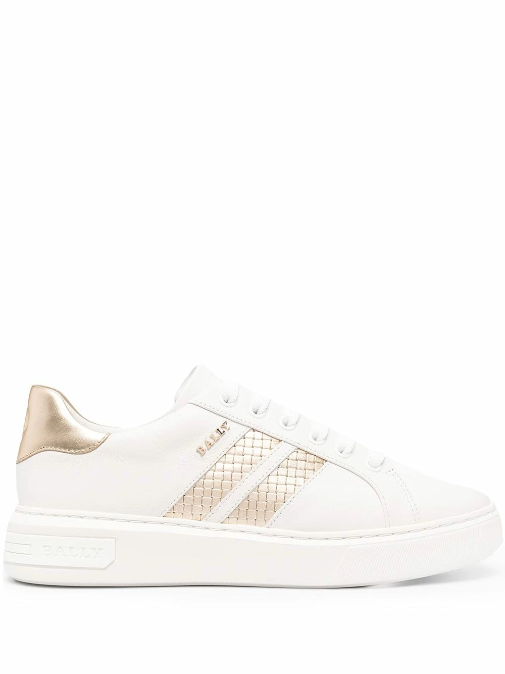 Logo doré, languette à logo embossé, bout rond, fermeture à lacer sur le devant, semelle intérieure à logo, semelle plate. Matière : cuir.
