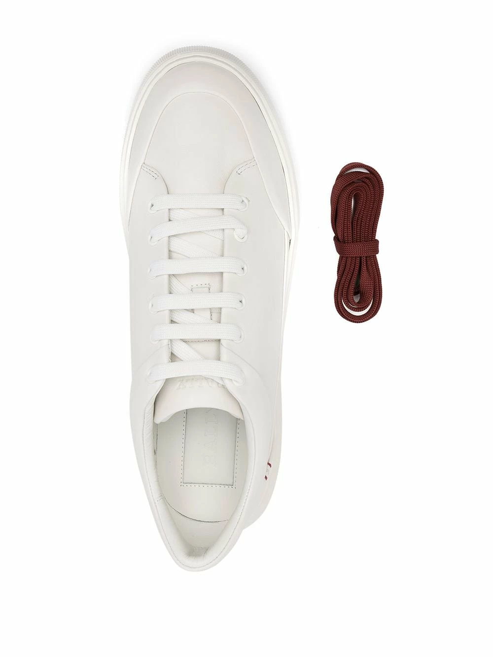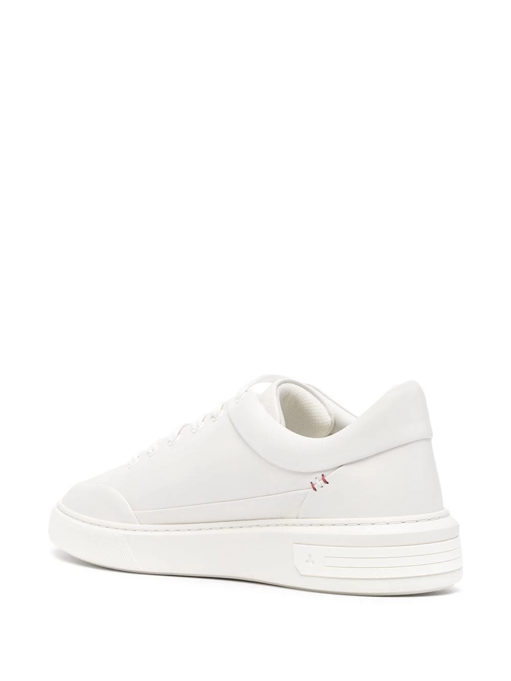 Bout rond, fermeture à lacer sur le devant, languette à logo embossé, contrefort à logo, semelle en caoutchouc. Couleur : Blanc. Matière : cuir.