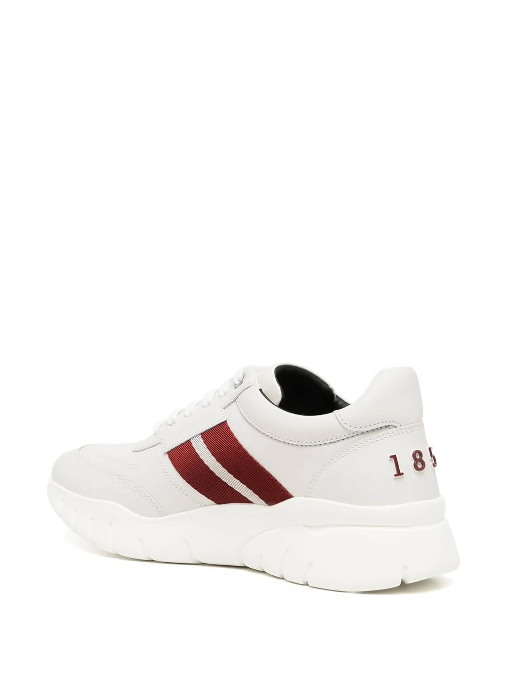 Détail de rayure latérale, bout rond, fermeture à lacer sur le devant, semelle plate en caoutchouc. Matière : cuir.