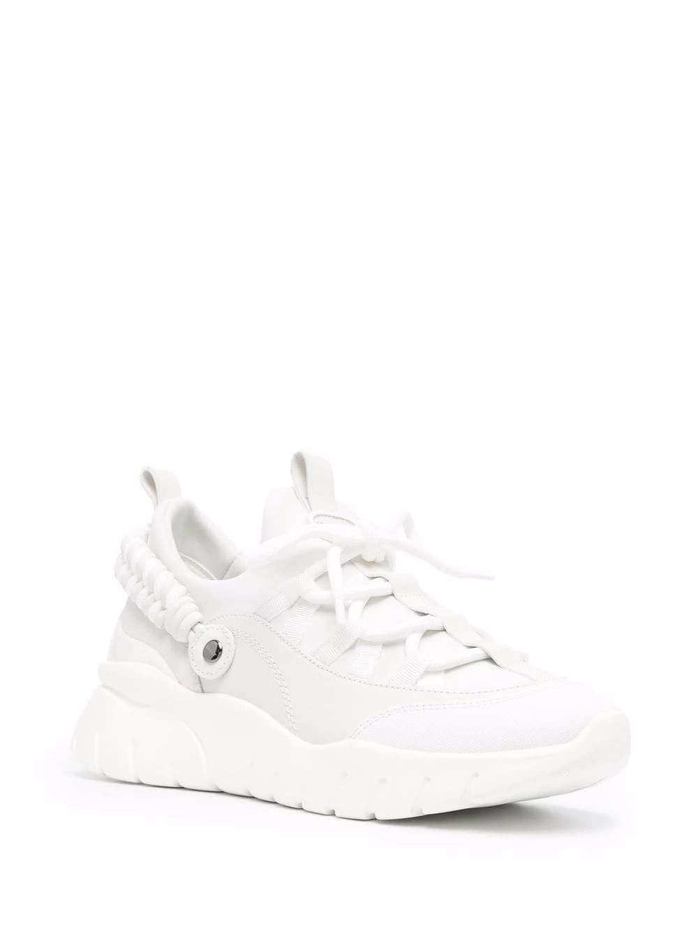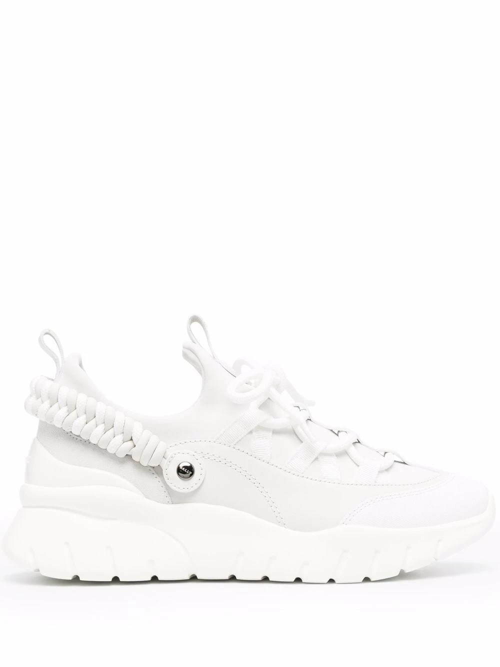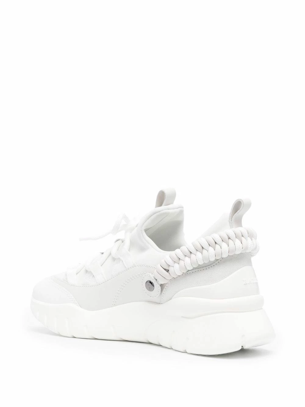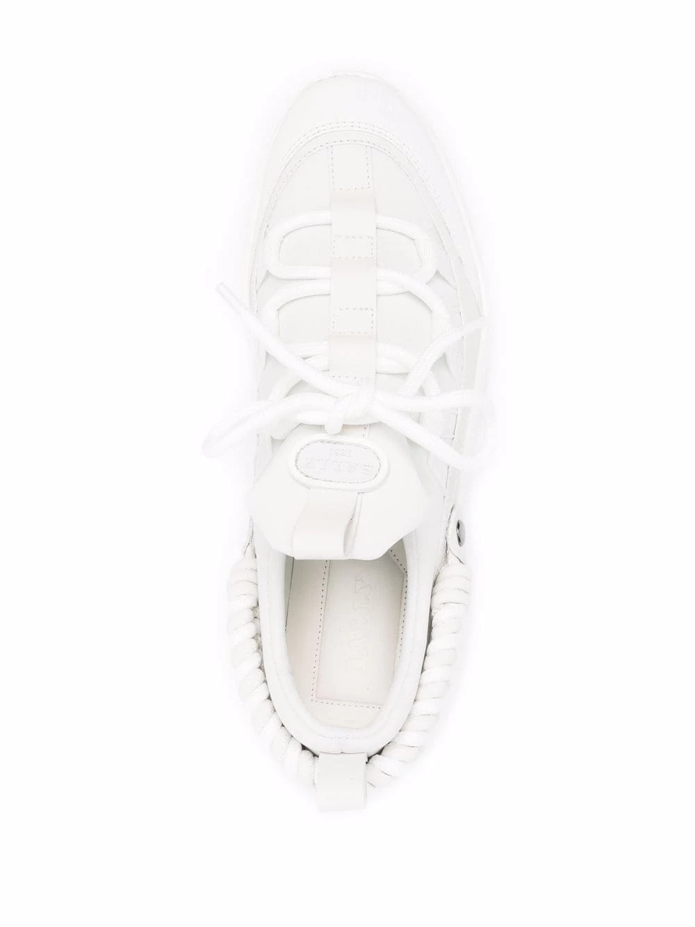 Bout en amande, fermeture à lacer sur le devant, languette à patch logo, languette d’enfilage au talon, semelle épaisse en caoutchouc. Couleur : blanc. Matière : cuir.