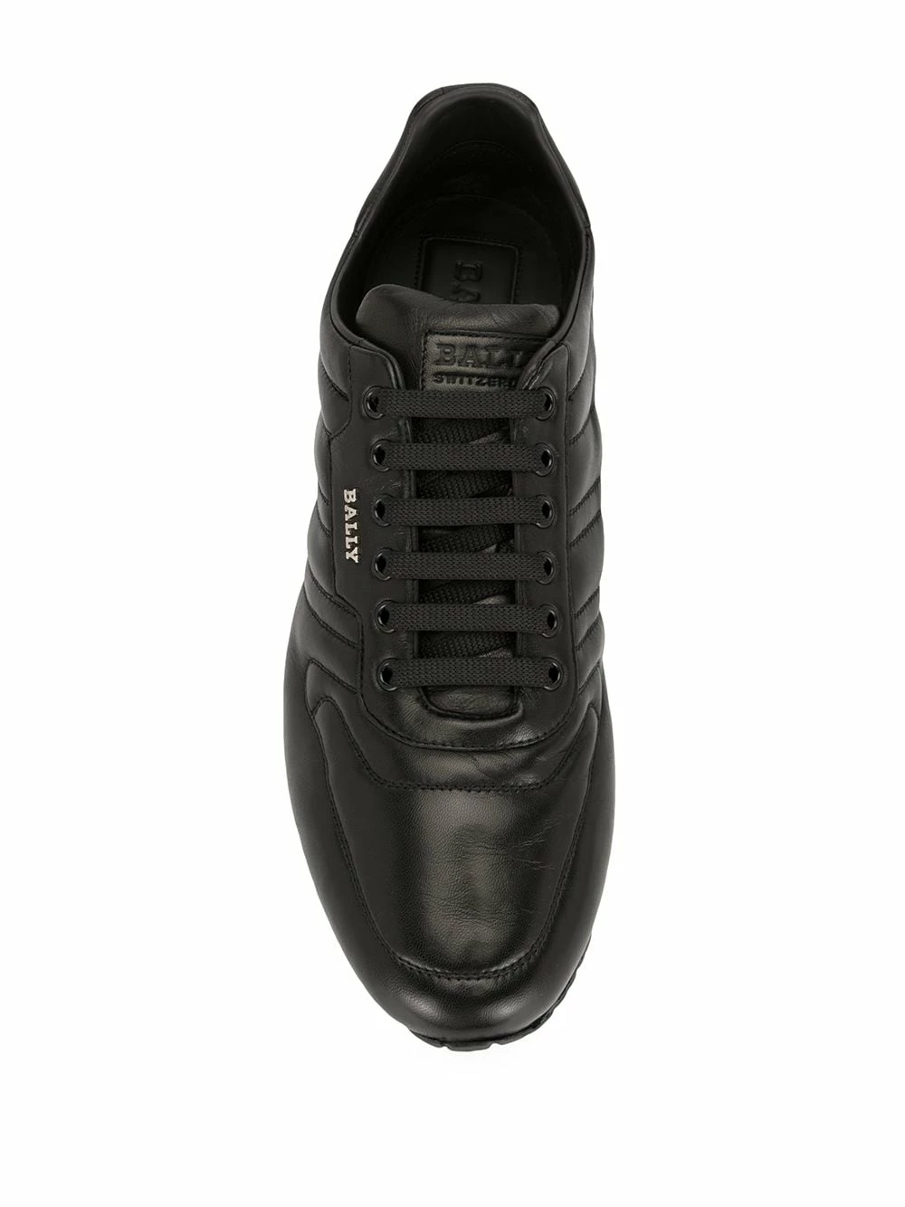Logo argenté, design matelassé, bout rond, fermeture à lacer sur le devant, languette à logo embossé, semelle intérieure à logo, semelle plate en caoutchouc. Couleur : noir.