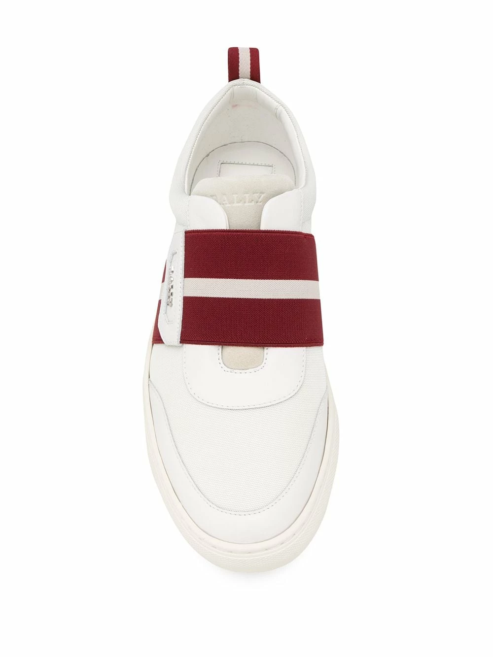 Baskets Hemon Bally avec motif de rayures, logo embossé sur le côté, bout rond, semelle plate, design à enfiler et languette arrière.