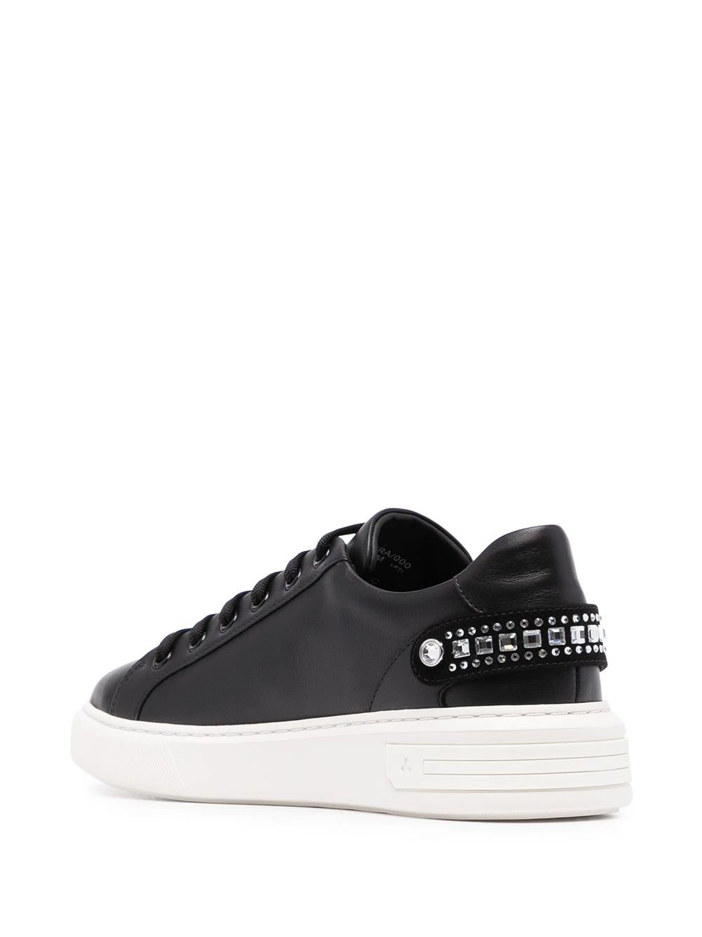 Bout rond, fermeture à lacer sur le devant, languette à logo embossé, semelle intérieure à logo, semelle plate en caoutchouc. Couleur : noir. Matière : cuir.