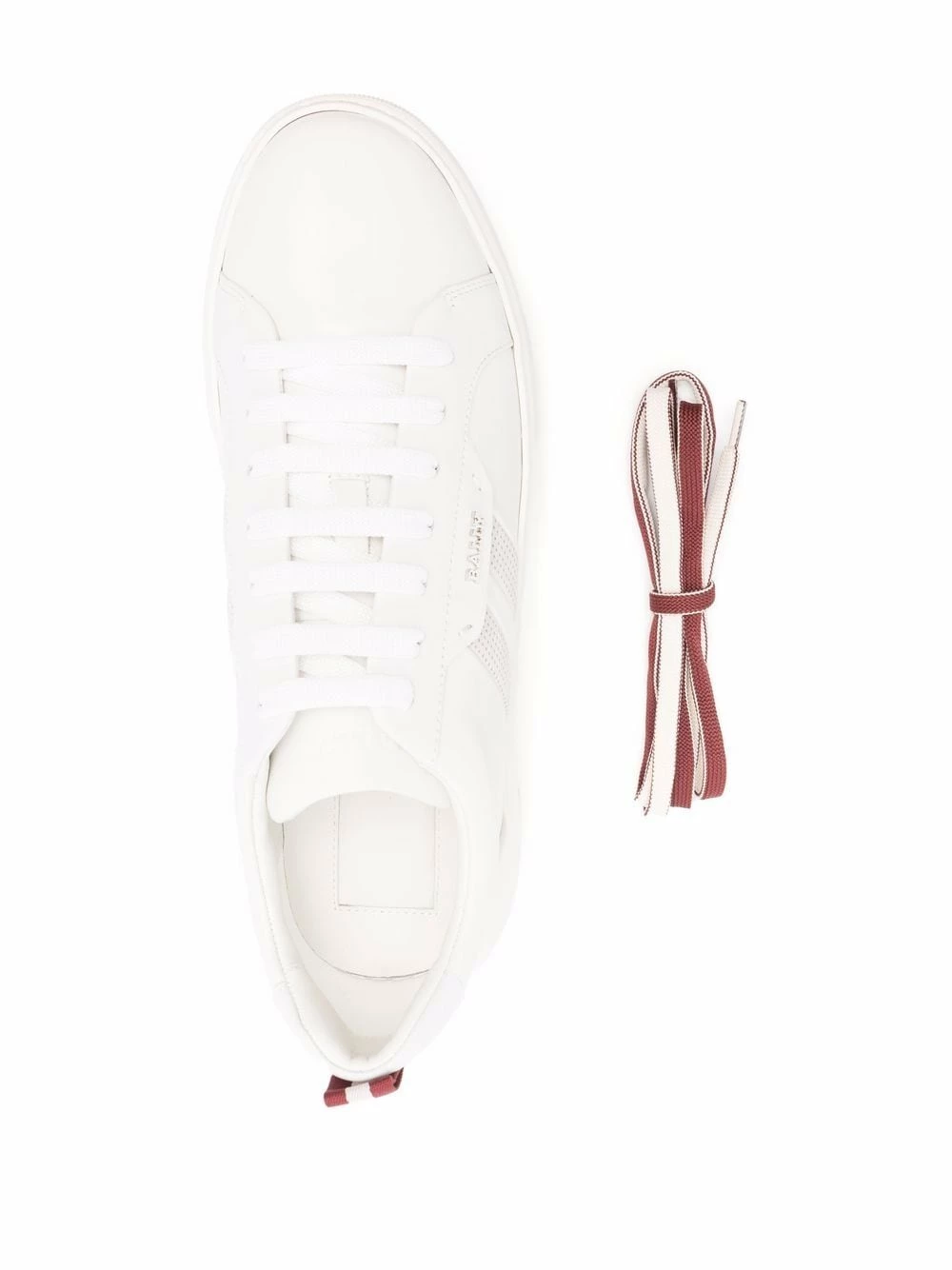 Détail de rayure latérale, logo argenté, bout rond, fermeture à lacer sur le devant, semelle intérieure à logo, semelle plate en caoutchouc. Matière : cuir.