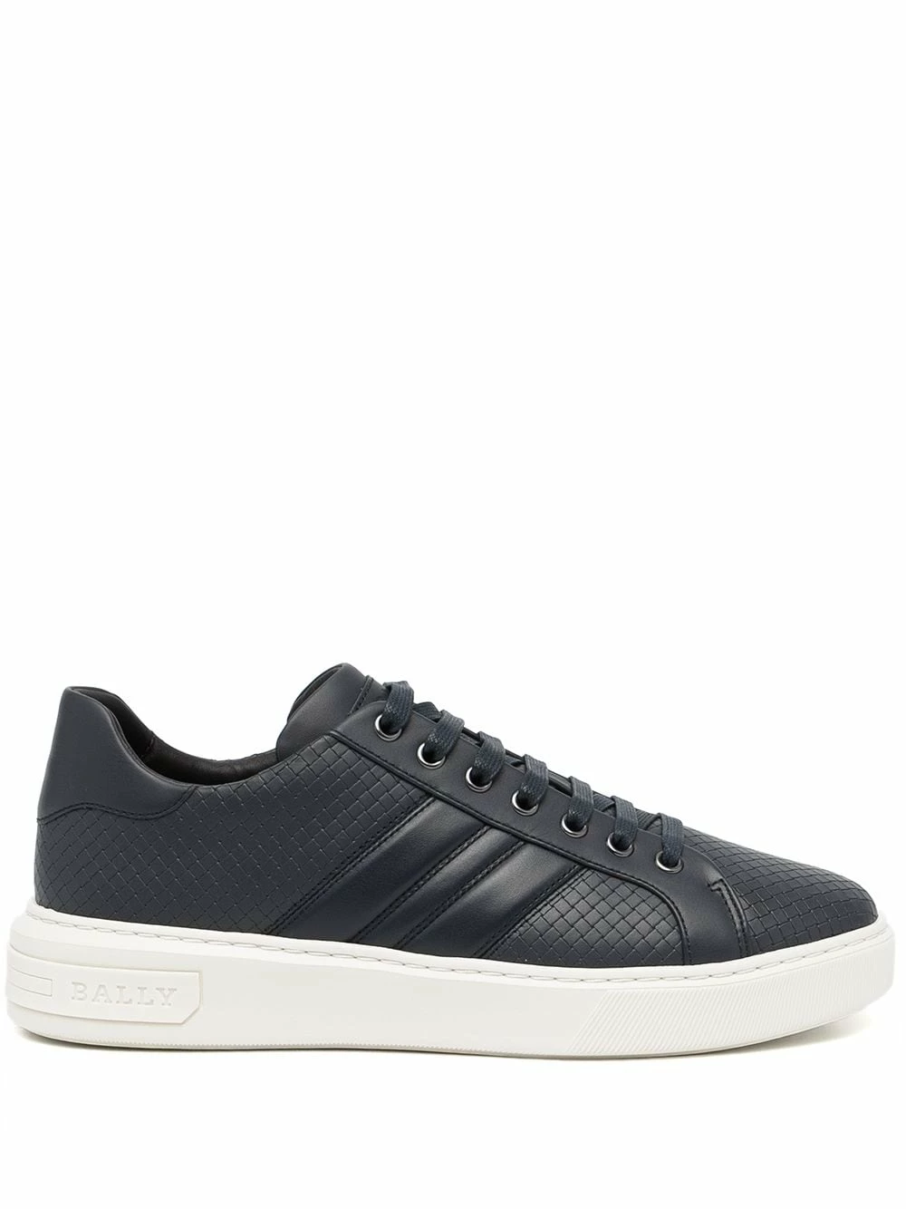 Design tissé, languette à logo embossé, coutures ton sur ton, bout rond, fermeture à lacer sur le devant, semelle à plateforme. Matière : cuir.