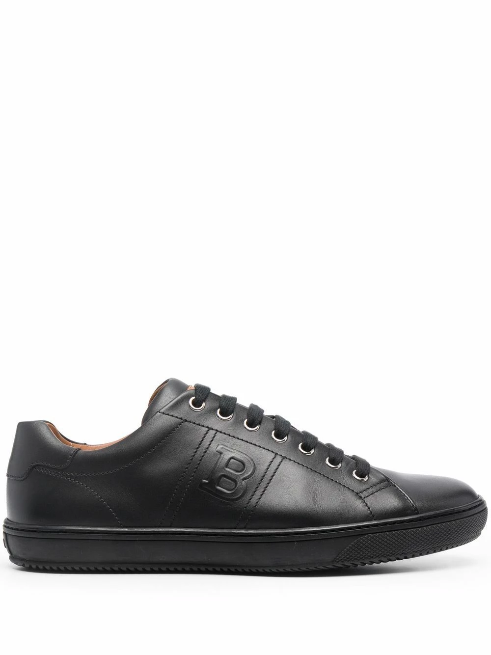 Semelle plate en caoutchouc, fermeture à lacer sur le devant, bout rond, logo embossé sur le côté. Couleur : noir. Matière : cuir.