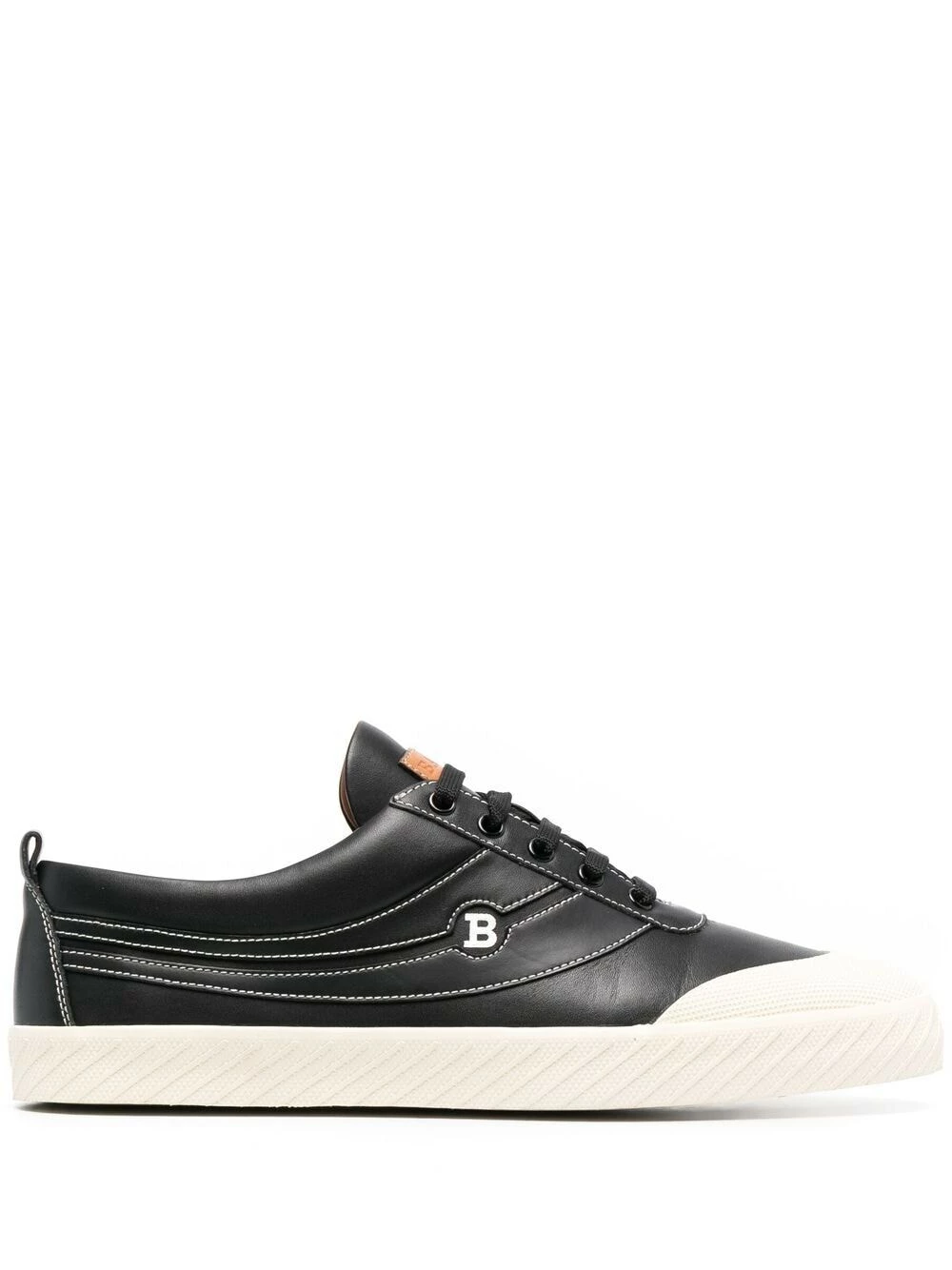 Coutures contrastantes, broderies, languette à patch logo, logo imprimé sur le côté, fermeture à lacer sur le devant, semelle plate en caoutchouc. Couleur : noir. Matière : cuir.