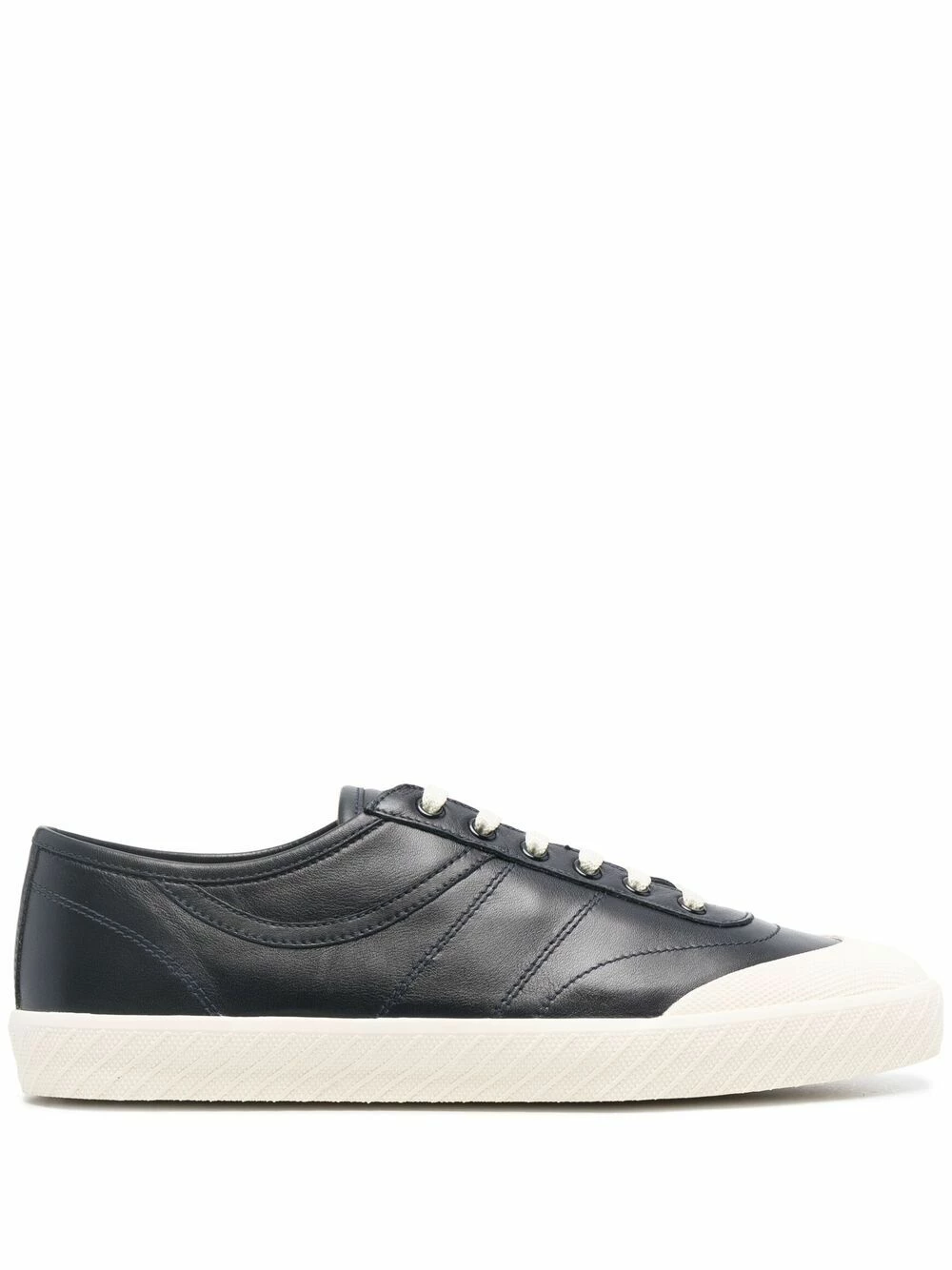 Design à empiècements, détails d’œillets, languette à patch logo, fermeture à lacer sur le devant, bout rond, semelle intérieure à logo, semelle plate en caoutchouc. Matière : cuir.