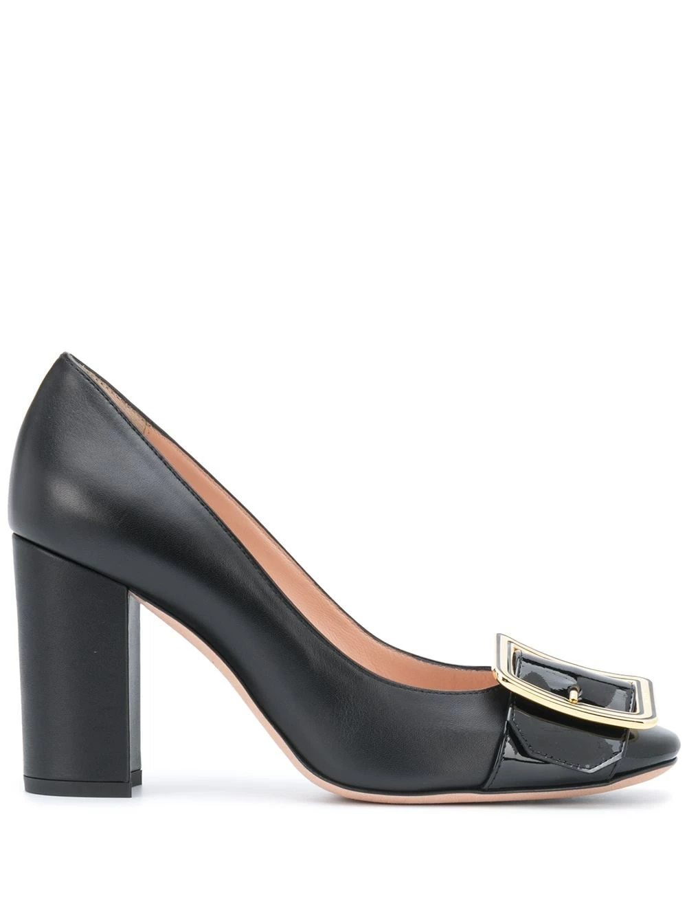 Bout rond, design à enfiler, fermeture à boucle, semelle intérieure à logo. Couleur : noir. Matière : cuir.