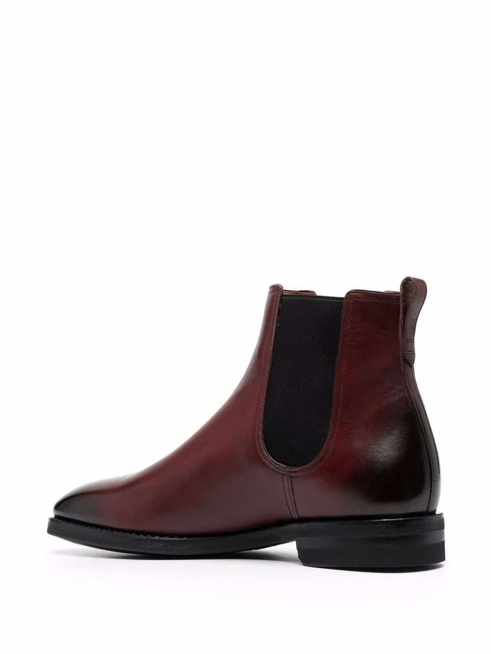 Bout en amande, languette d’enfilage au talon, semelle intérieure à logo, empiècements élastiqués sur les côtés, hauteur cheville. Couleur : marron. Matière : cuir.