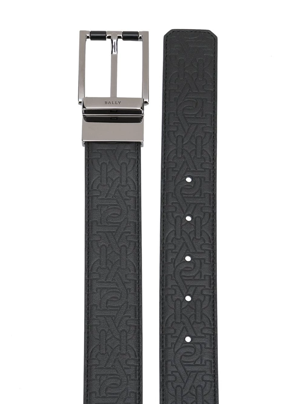 Motif monogrammé embossé, fermeture à boucle argentée, logo gravé, taille ajustable, trous percés. Couleur : noir. Matière : cuir.