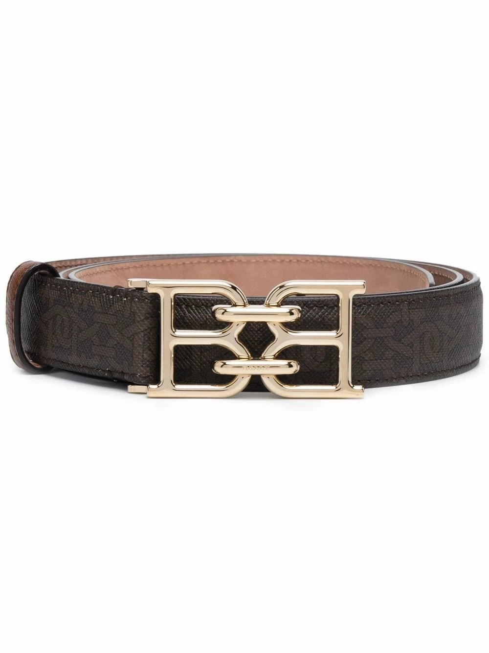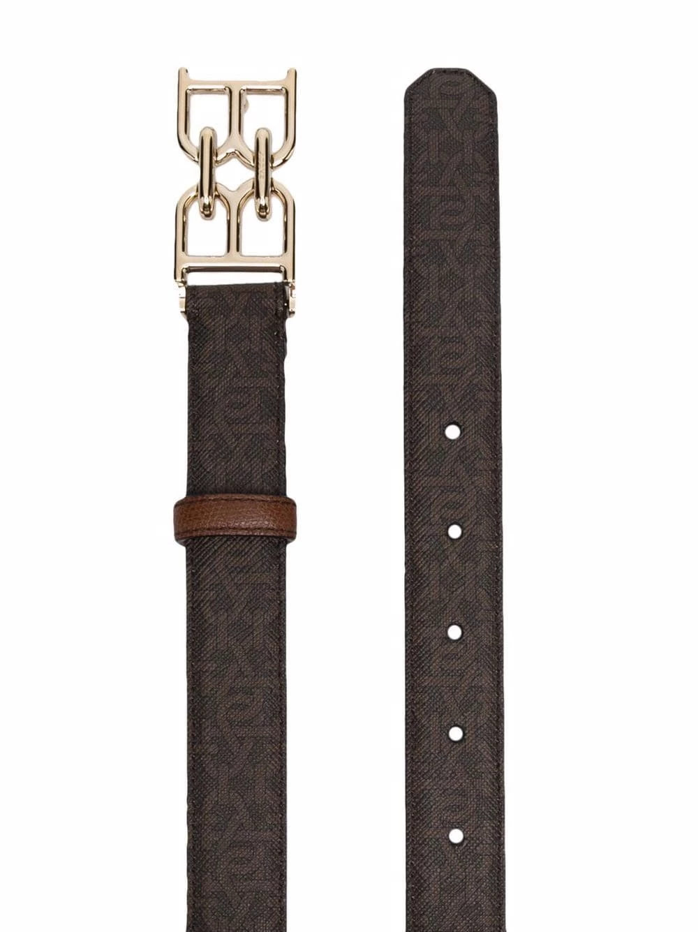 Marron, plaque logo dorée, fermeture à boucle, taille ajustable.