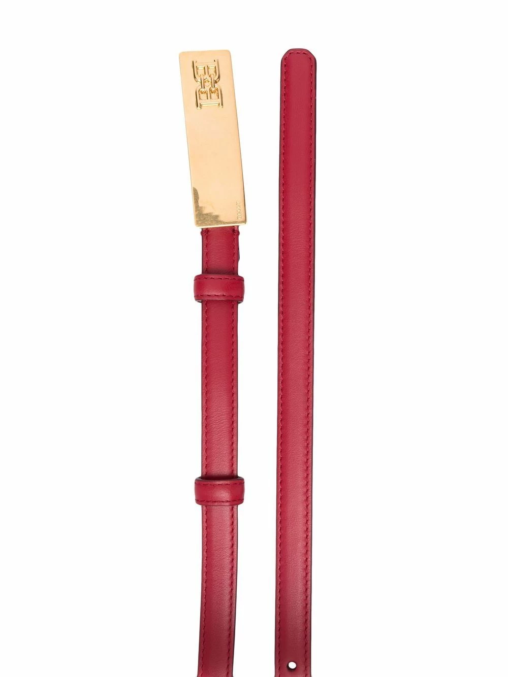 Finitions en métal doré, trous percés, fermeture à boucle sur le devant. Matière : cuir.