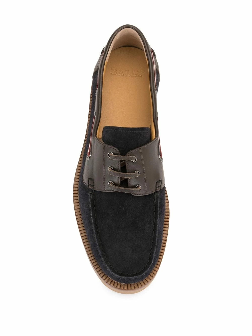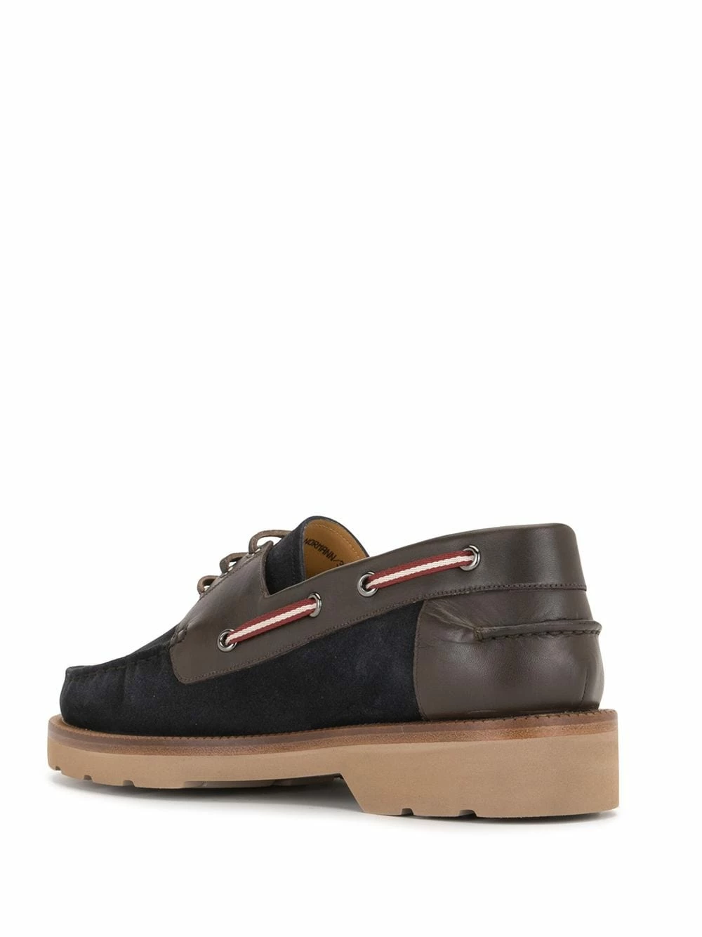 Design à empiècements, semelle crantée en caoutchouc, bout en amande, fermeture à lacer sur le devant, semelle en cuir.
