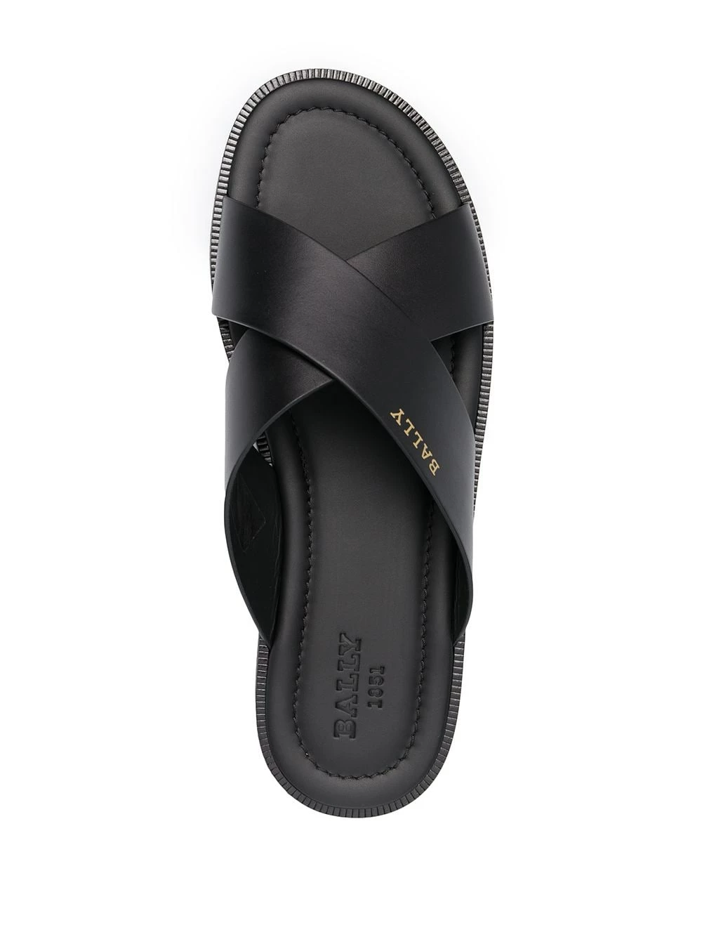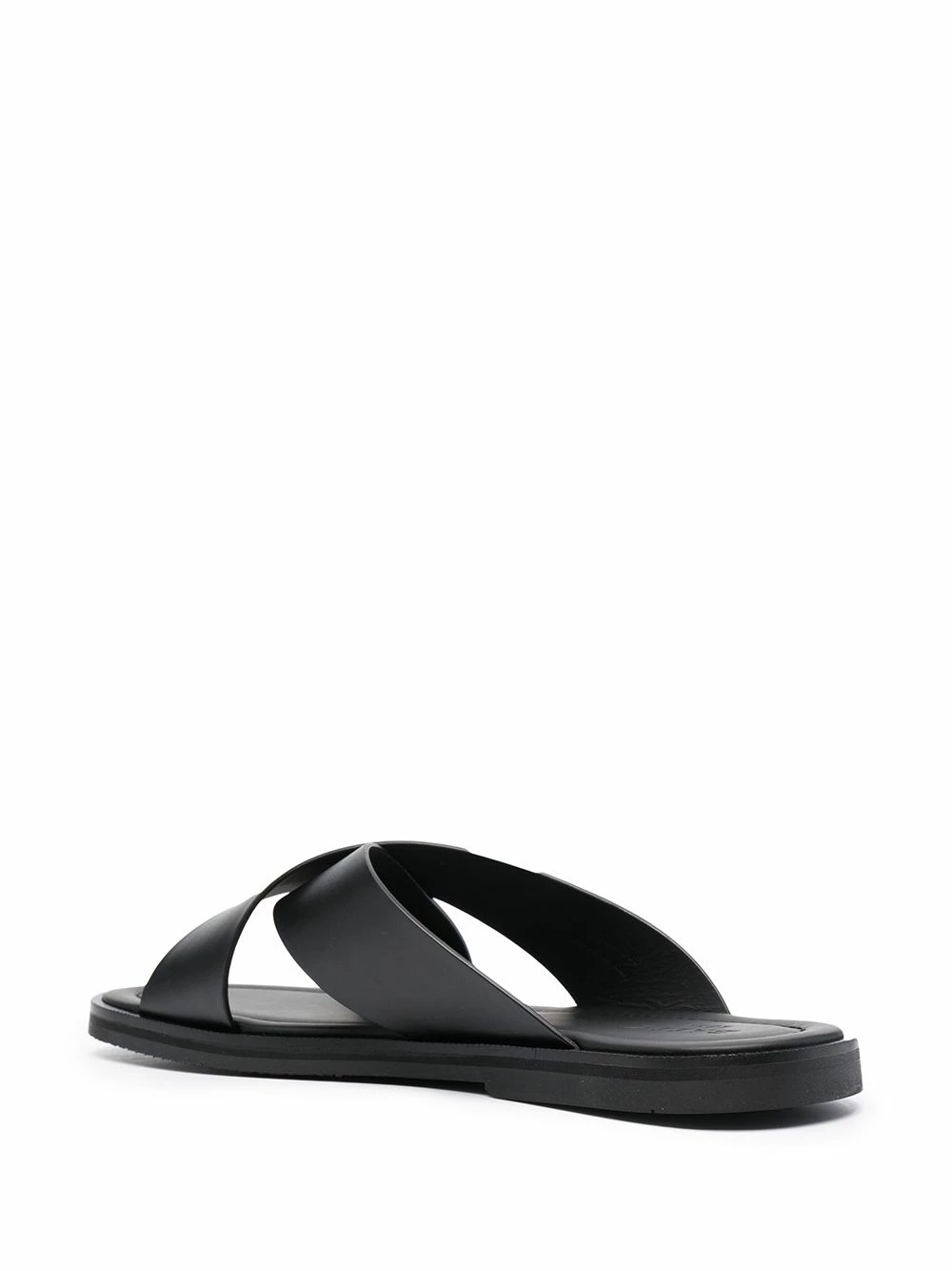 Bout ouvert, design à enfiler, semelle intérieure à logo, semelle plate. Couleur : noir. Matière : cuir.