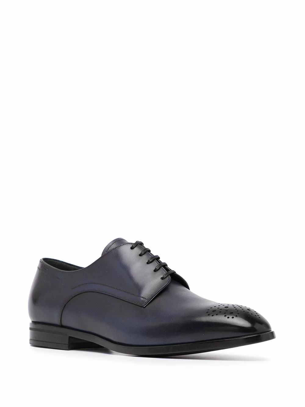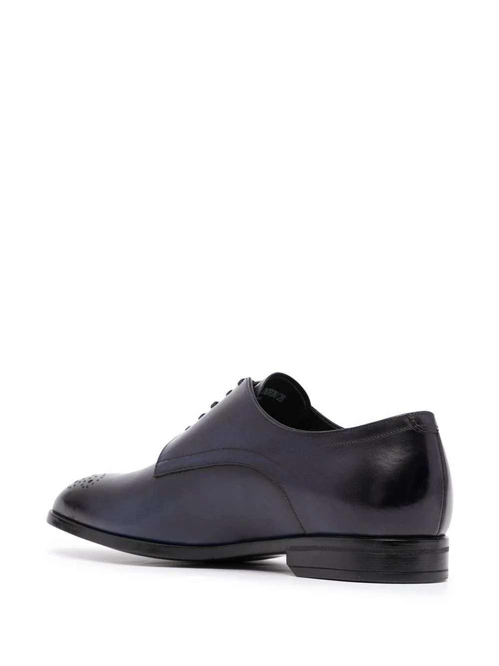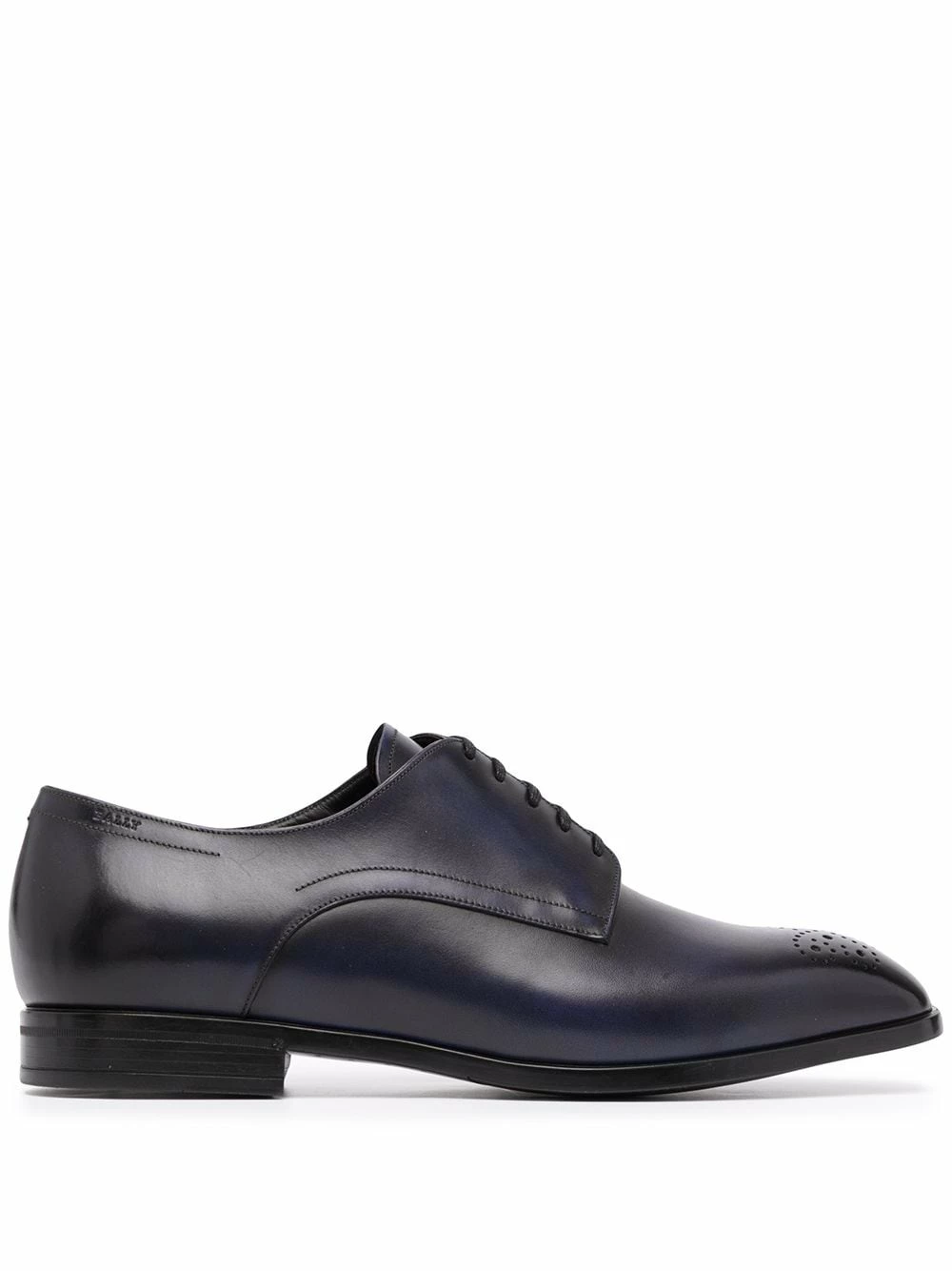 Détails de perforation, bout rond, fermeture à lacer sur le devant, semelle plate. Couleur : noir. Matière : cuir.