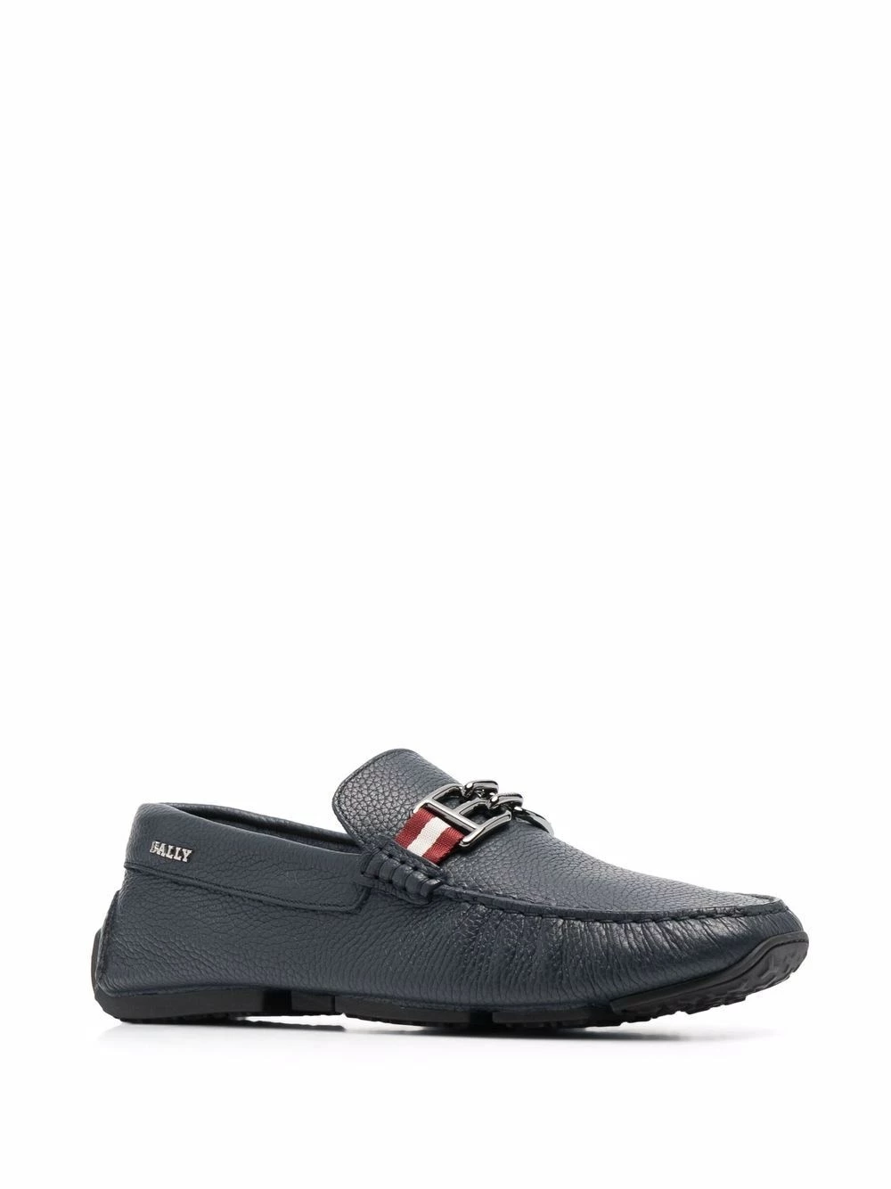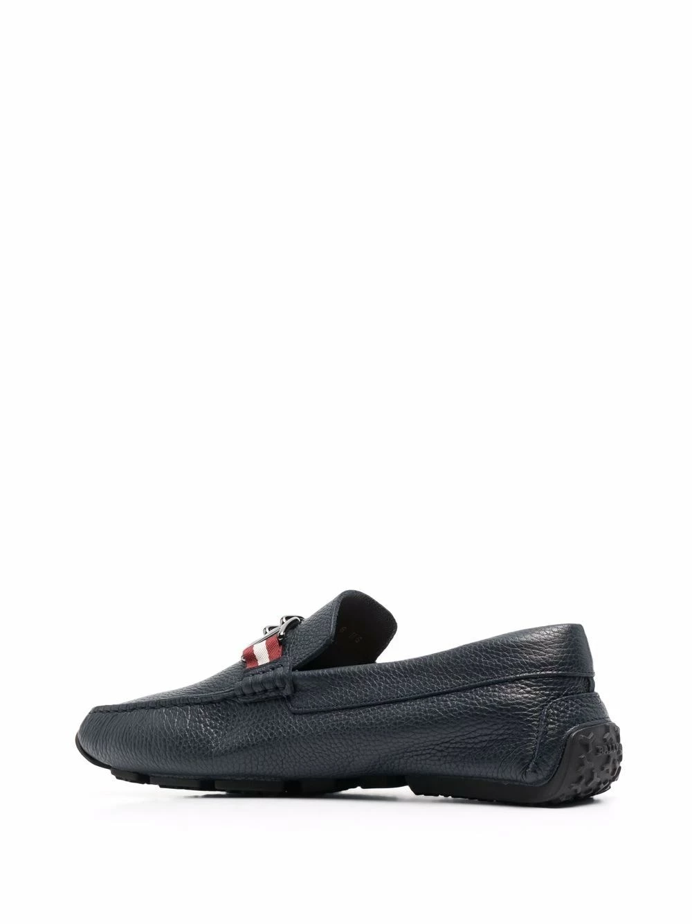 Plaque logo, détails rayés, bout carré, design à enfiler, semelle intérieure à logo, semelle plate. Matière : cuir.