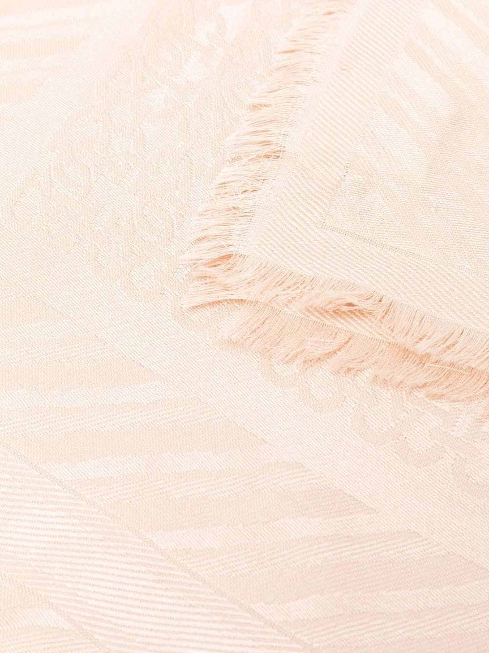 Design en jacquard, rayures diagonales, bords frangés. Couleur : rose.