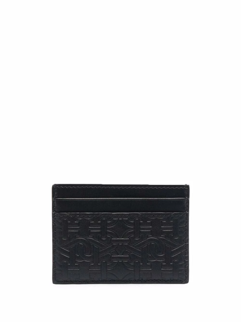 Motif monogrammé embossé, plaque logo argentée, fentes pour carte. Couleur : noir. Matière : cuir.