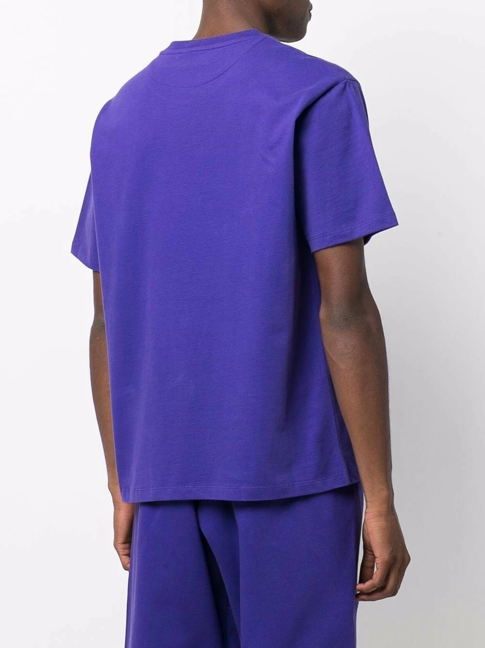 Tricot point jersey, logo imprimé à la poitrine, encolure ras du cou, manches courtes. Couleur : violet. Matière : coton biologique.
