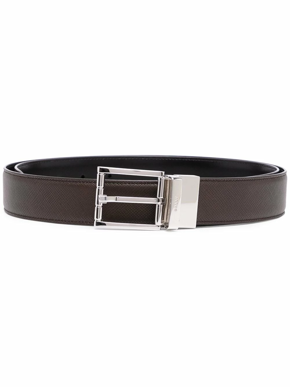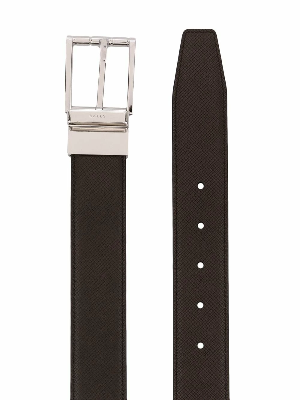 Ceinture à boucle en cuir BALLY avec détails argentés, fermeture à boucle sur le devant, détails perforés et bout carré.