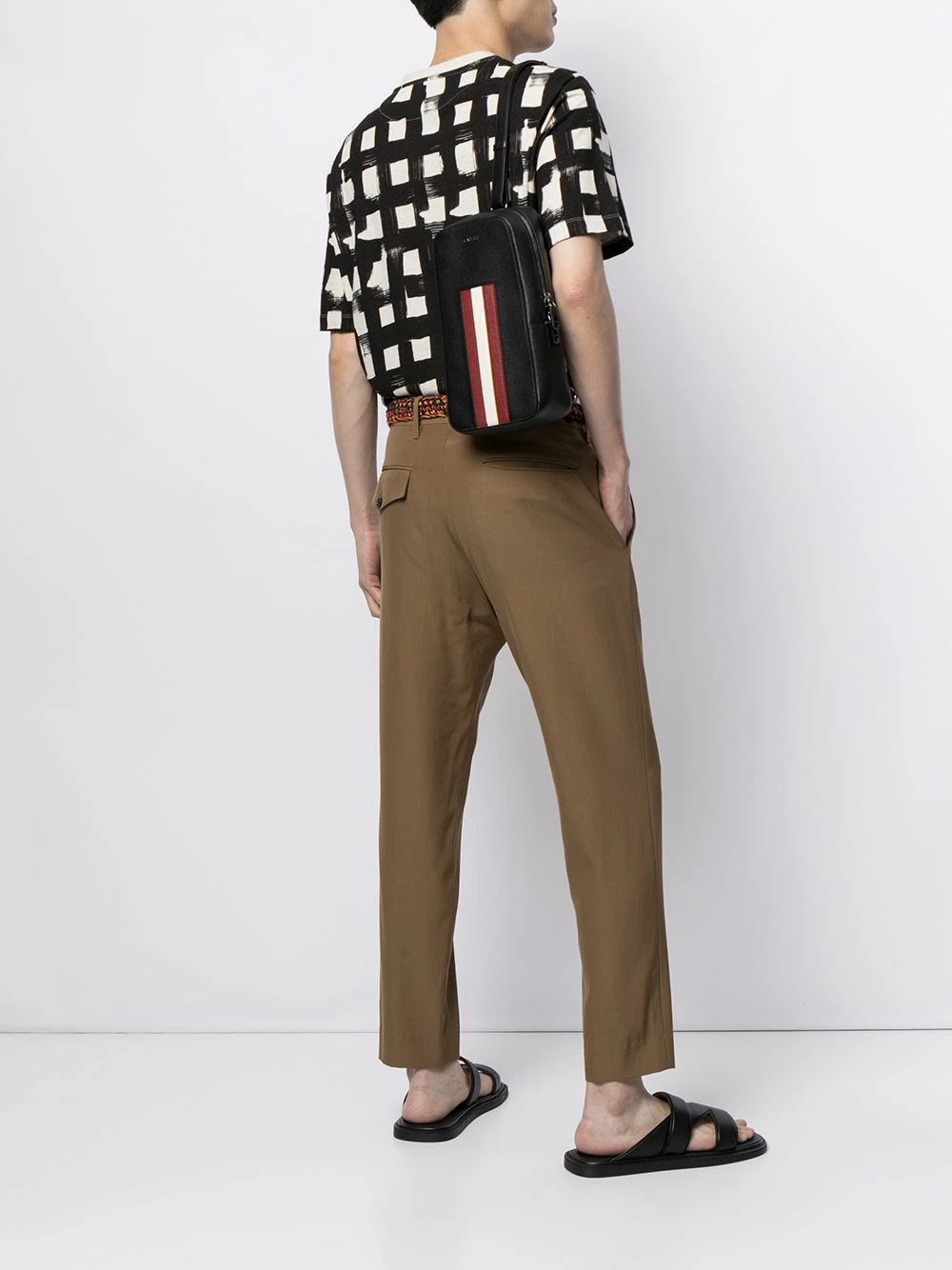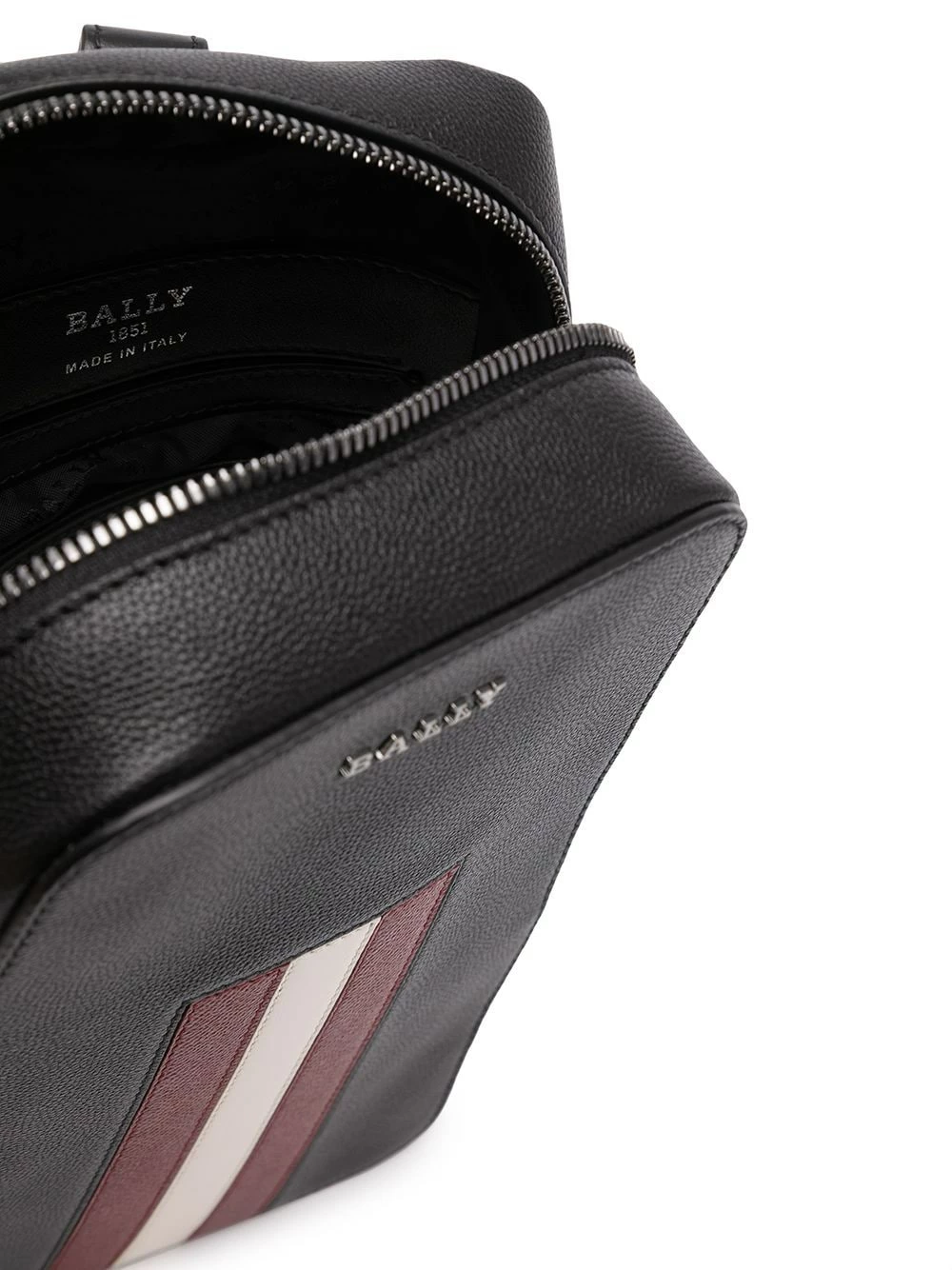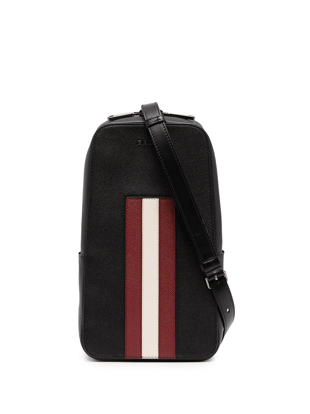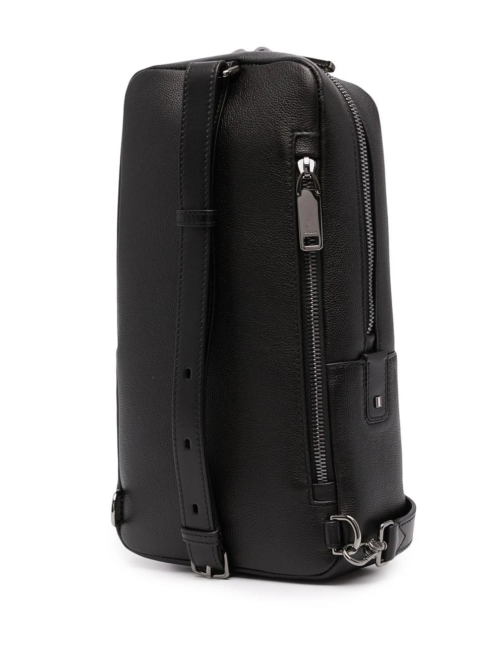 Plaque logo argentée, détails rayés, bride porté épaule détachable et ajustable, fermeture zippée à double sens, compartiment principal, poches intérieures zippées, poche arrière zippée. Couleur : noir. Matière : cuir.