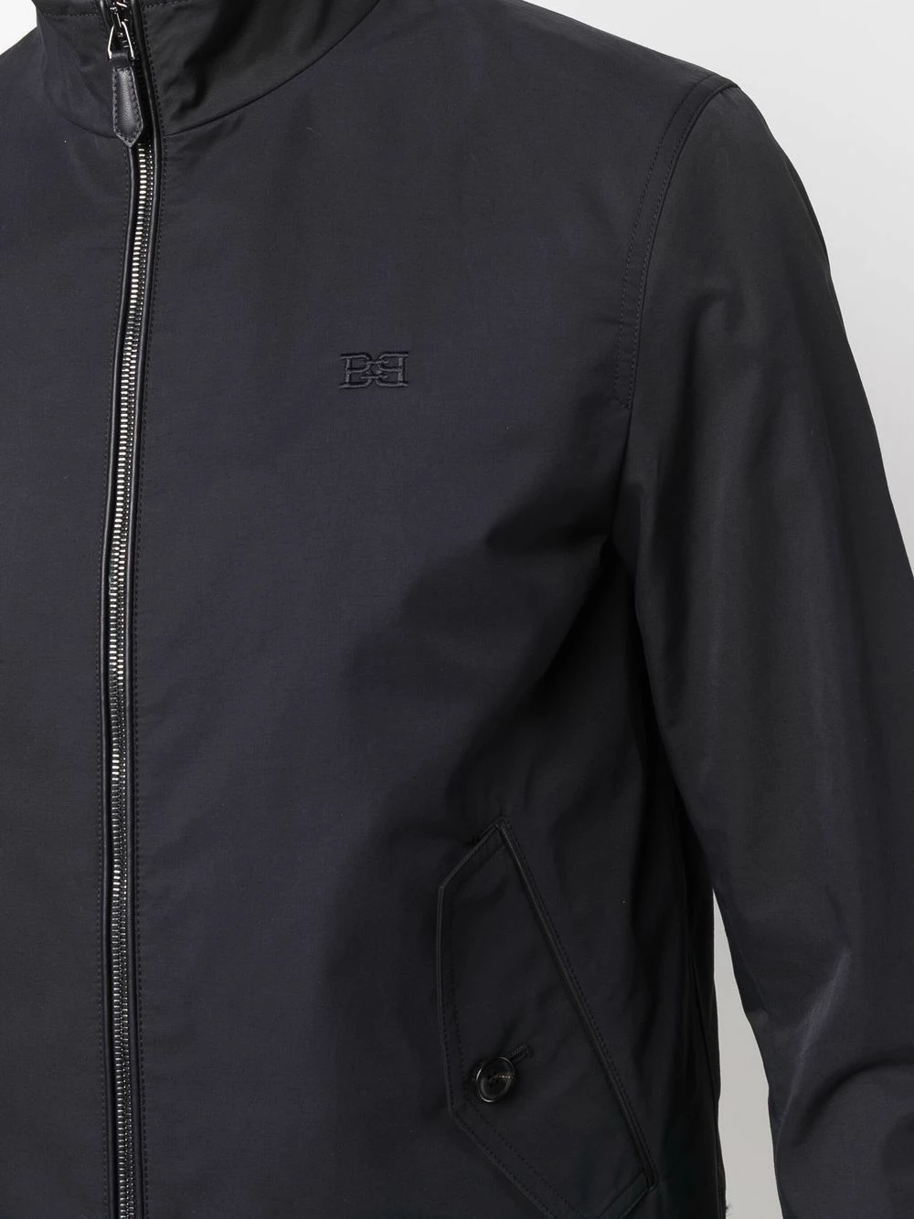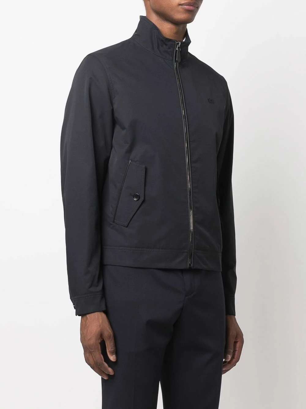 Col montant, fermeture zippée devant, manches longues, deux poches à rabat sur le devant, ourlet droit.