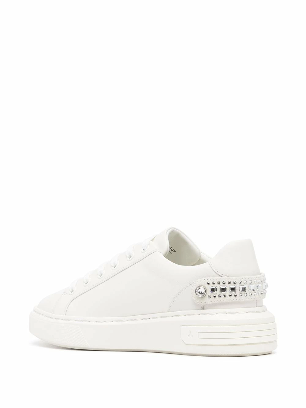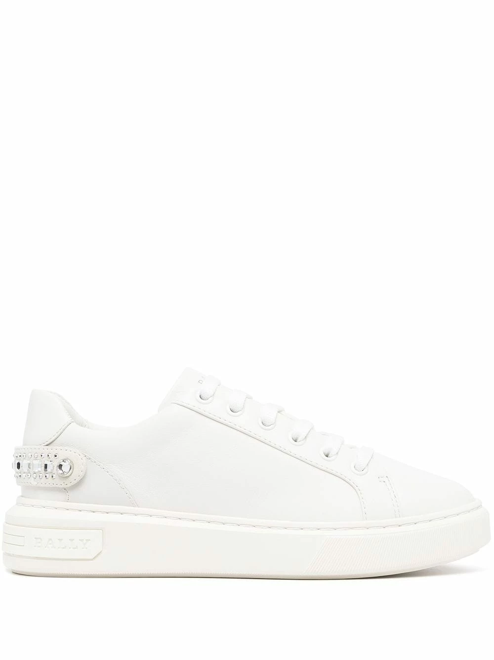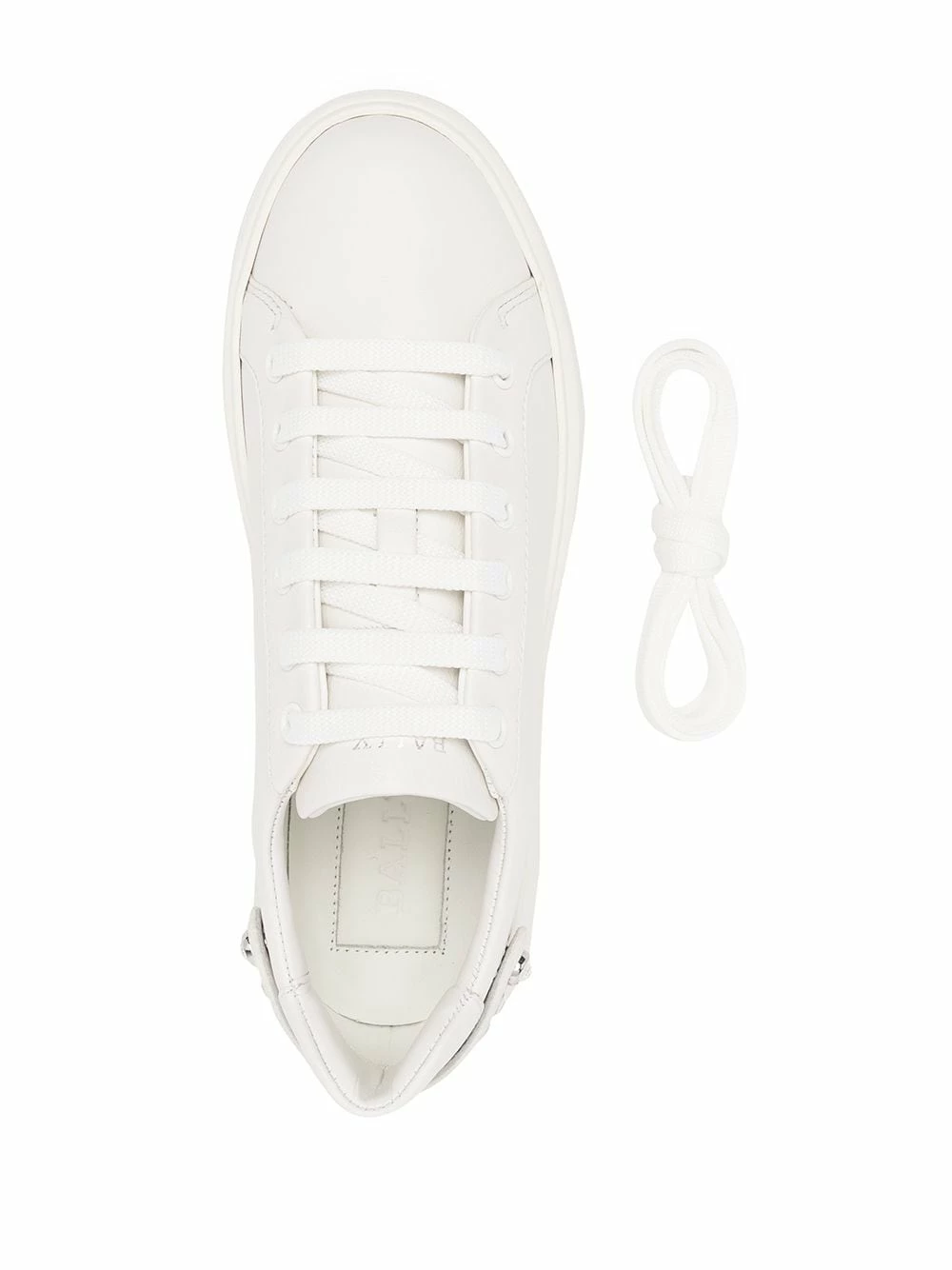 Ornements argentés, languette à logo embossé, bout rond, fermeture à lacer sur le devant, semelle intérieure à logo, semelle plate en caoutchouc. Matière : cuir.