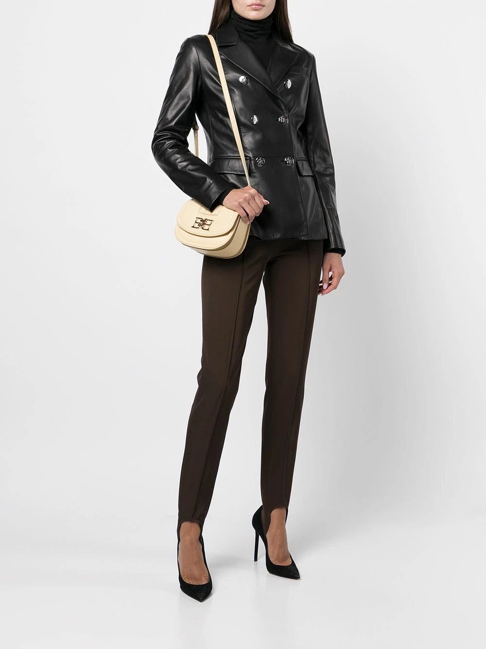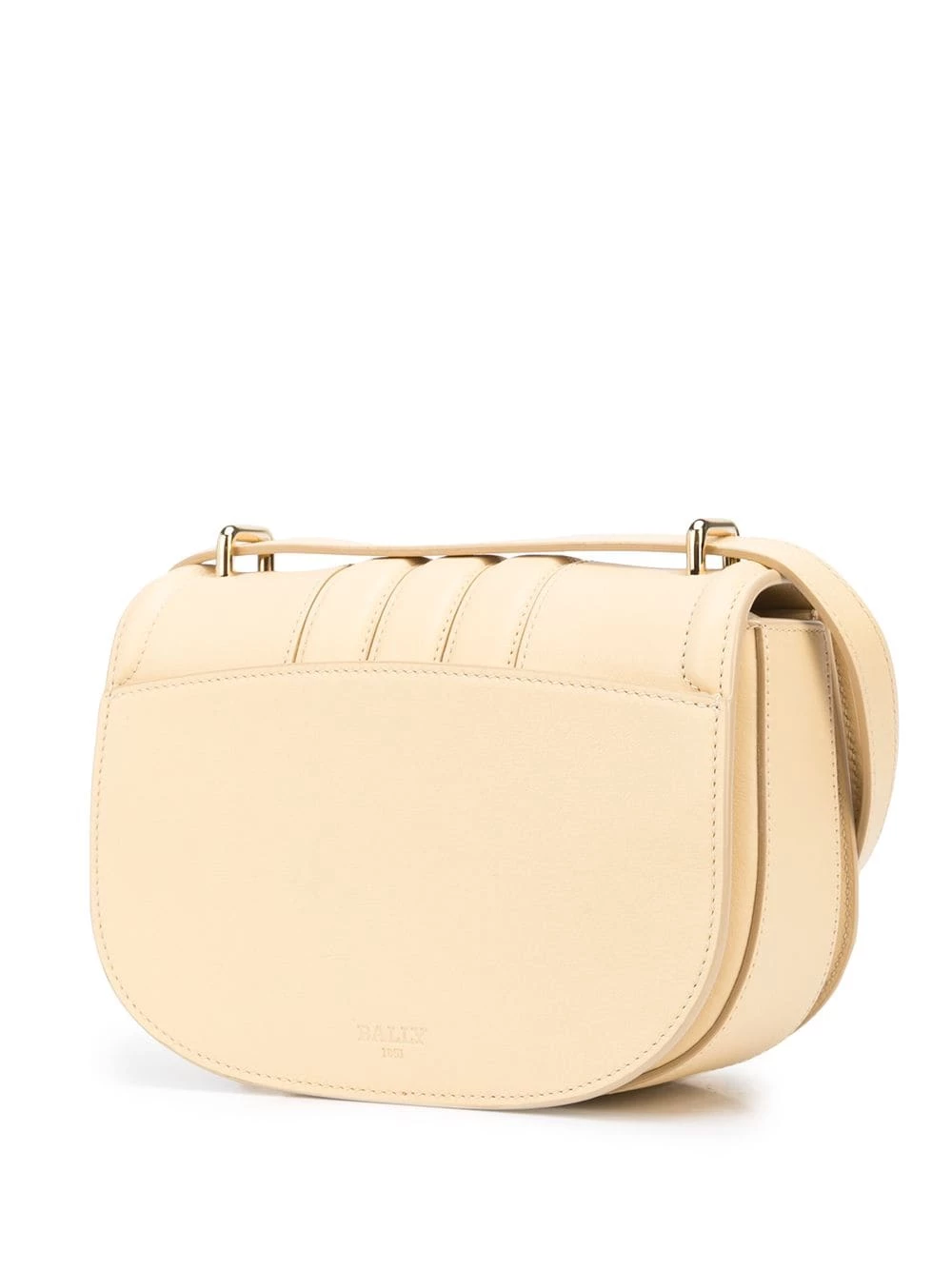 Texture grainée, plaque logo dorée, rabat sur le dessus, fermoir pivotant, poche intérieure plaquée, bride porté épaule ajustable. Couleur : jaune. Matière : cuir.
