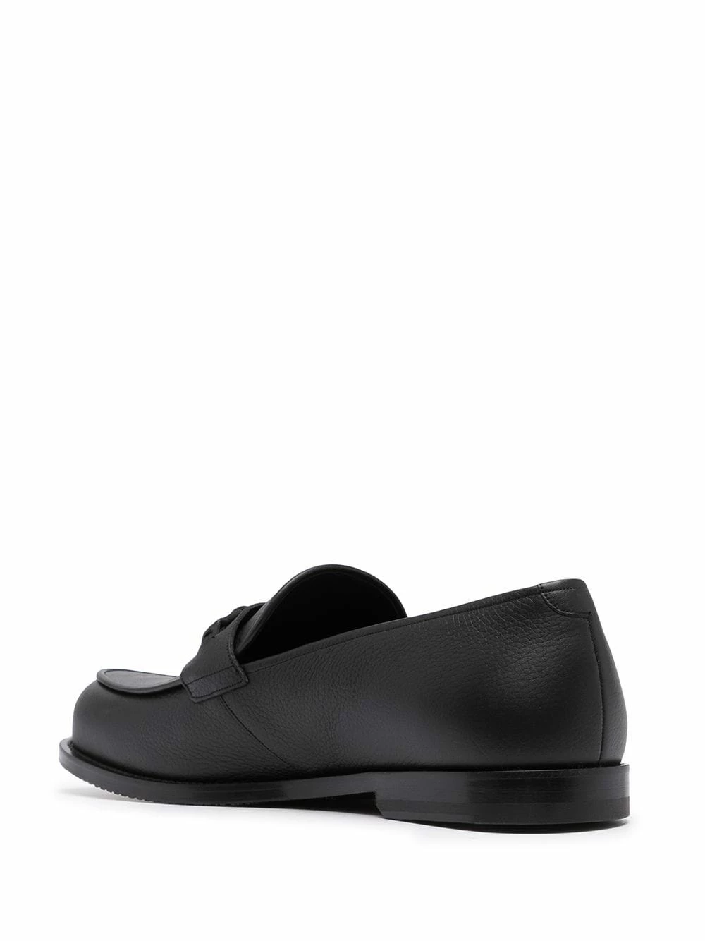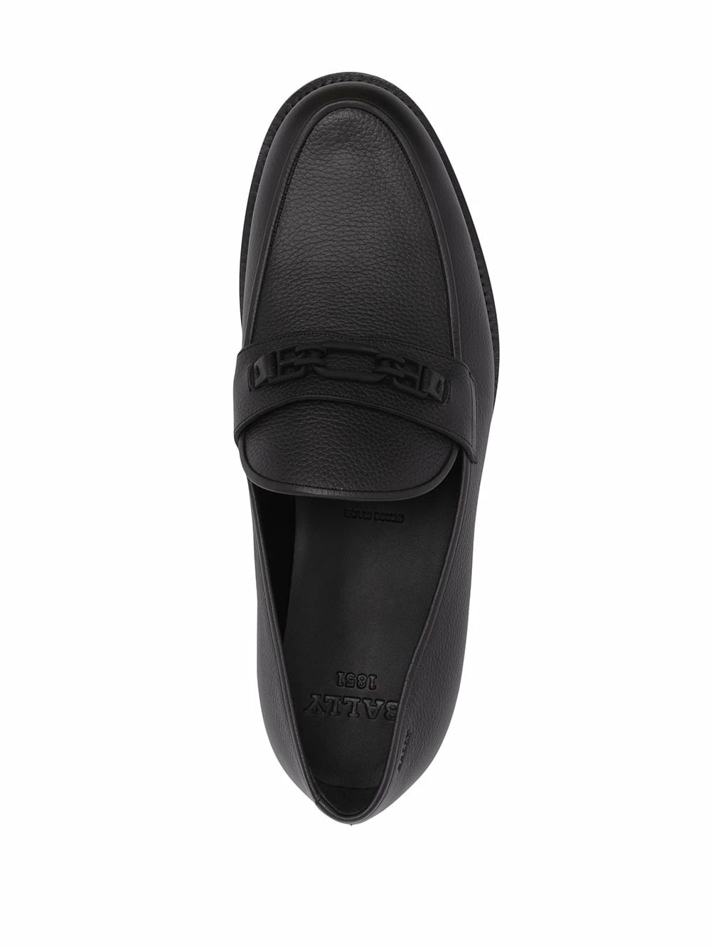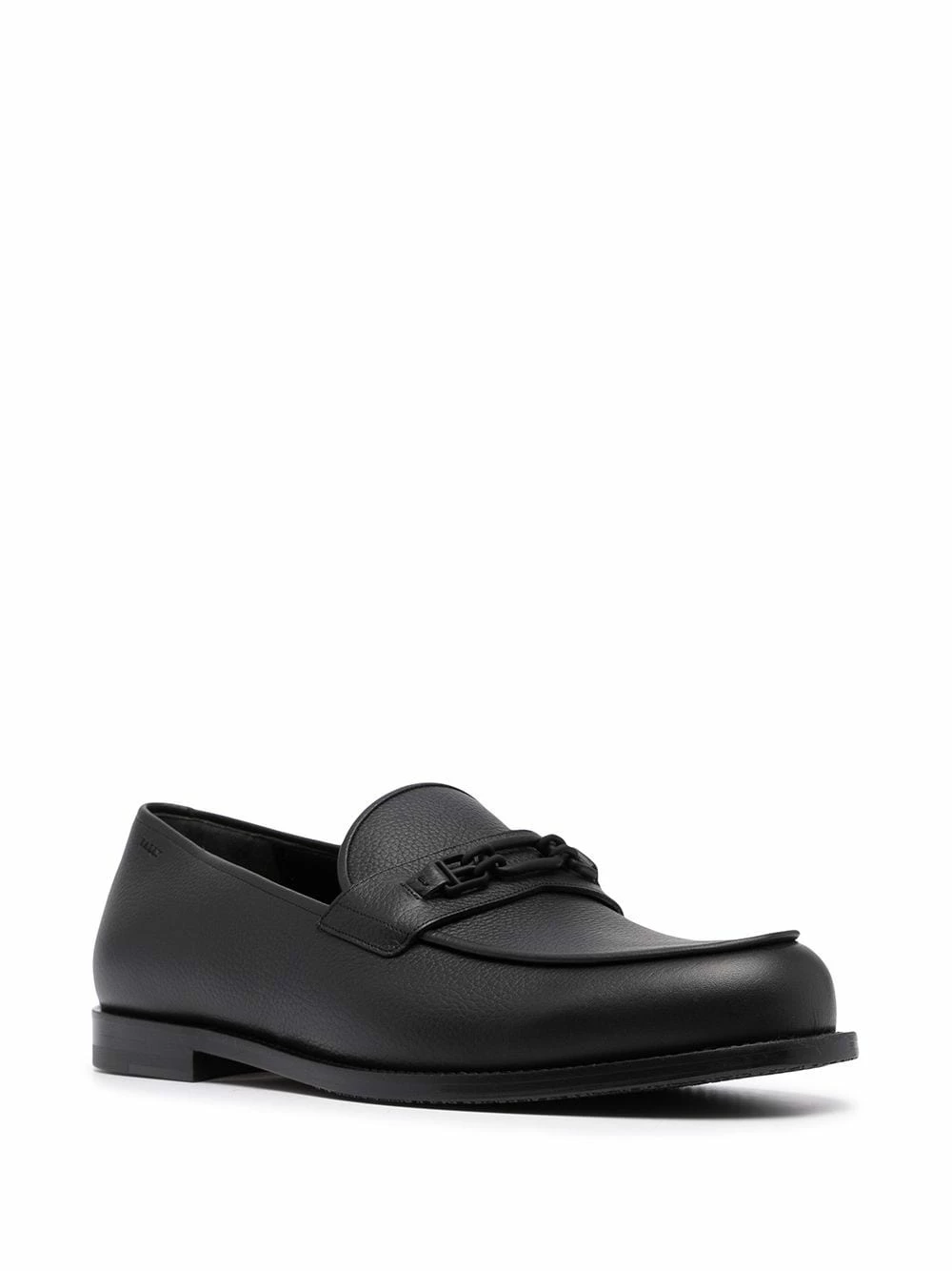 Détail de boucle décorative, bout rond, semelle intérieure à logo, semelle plate en cuir. Couleur : noir. Matière : cuir.