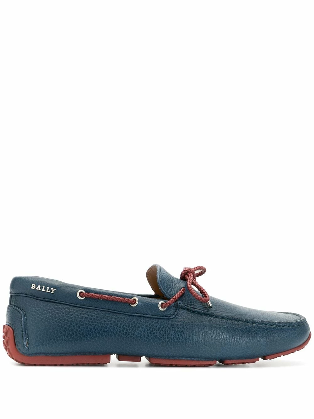 Mocassins à détail lacé Bally avec brides entrelacées, nœud sur le devant, plaque logo argentée, détail de coutures visibles, bout rond, semelle intérieure à logo, semelle en caoutchouc et design à enfiler.