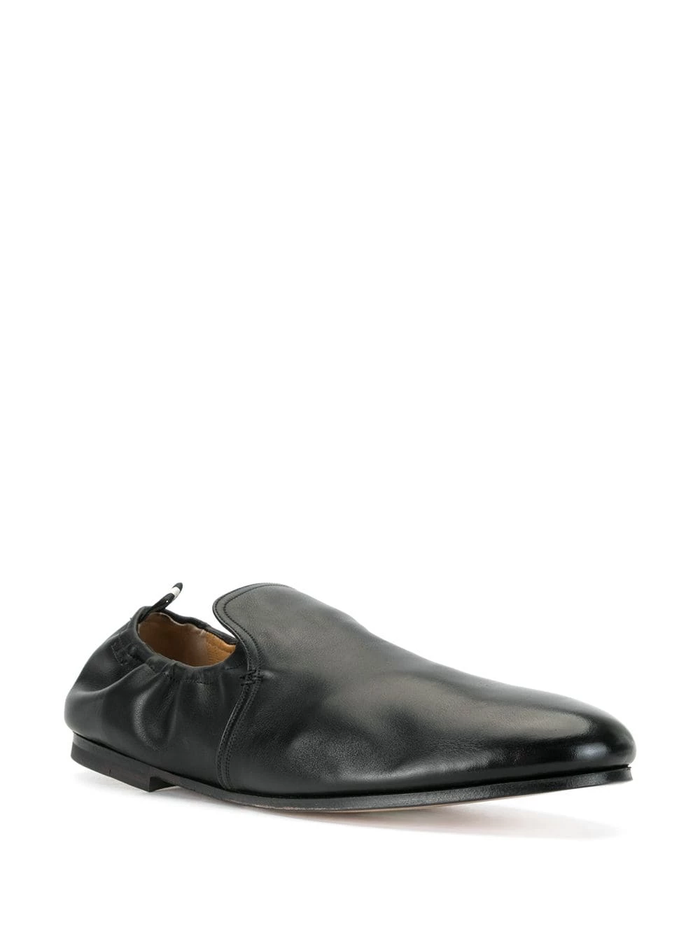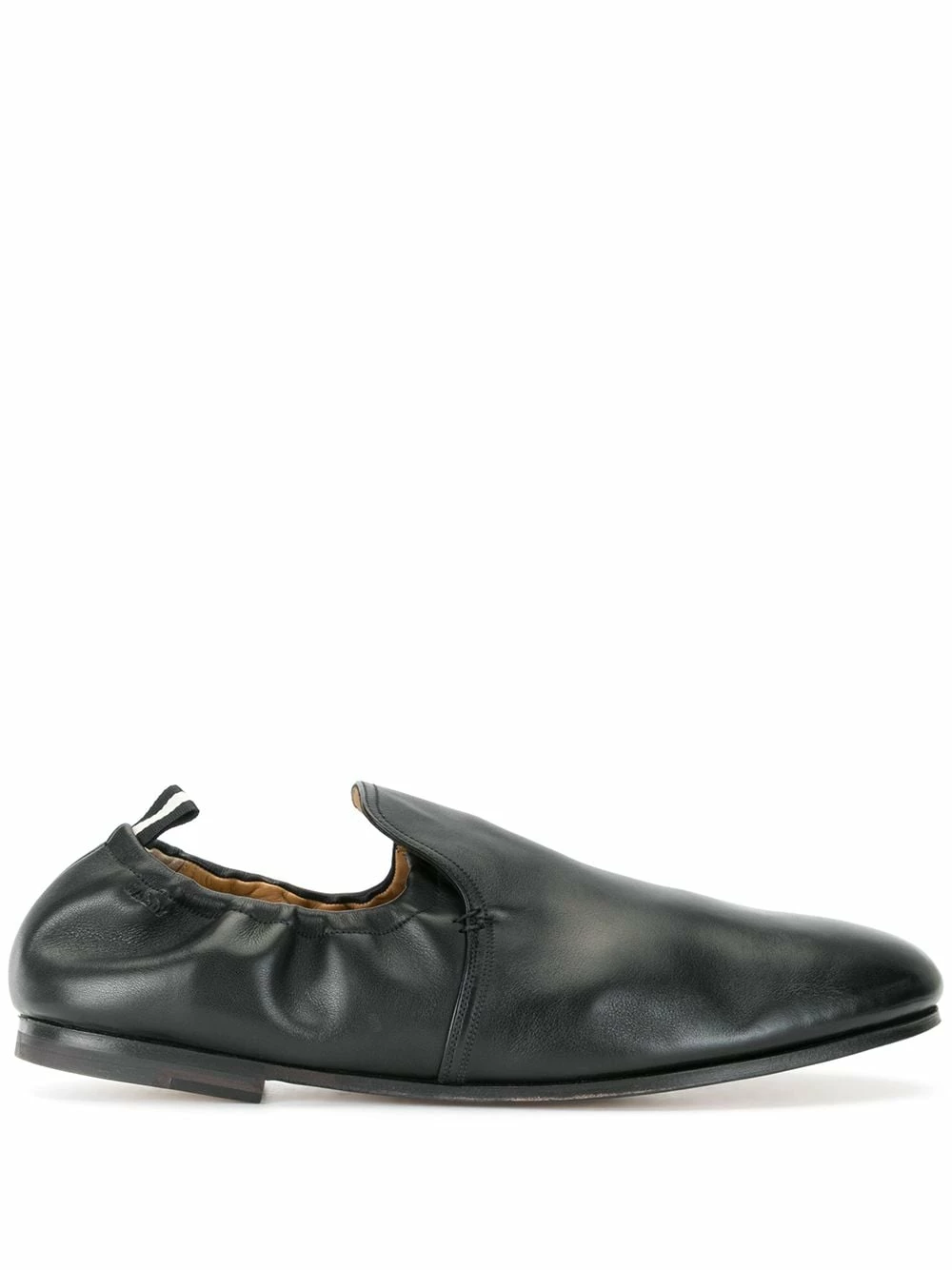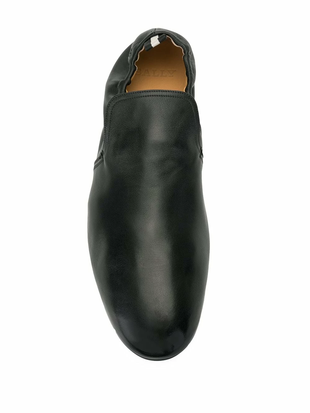 Mocassins à empiècements élastiqués en cuir Bally avec semelle plate en caoutchouc, languette arrière, semelle intérieure à logo, design à enfiler et bout rond. Couleur : noir.