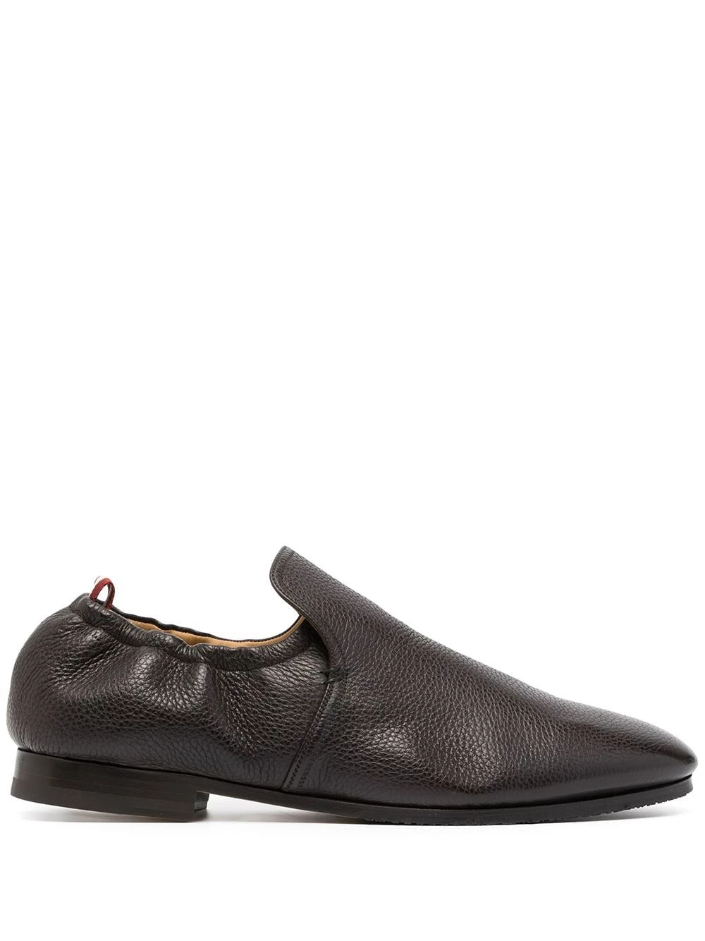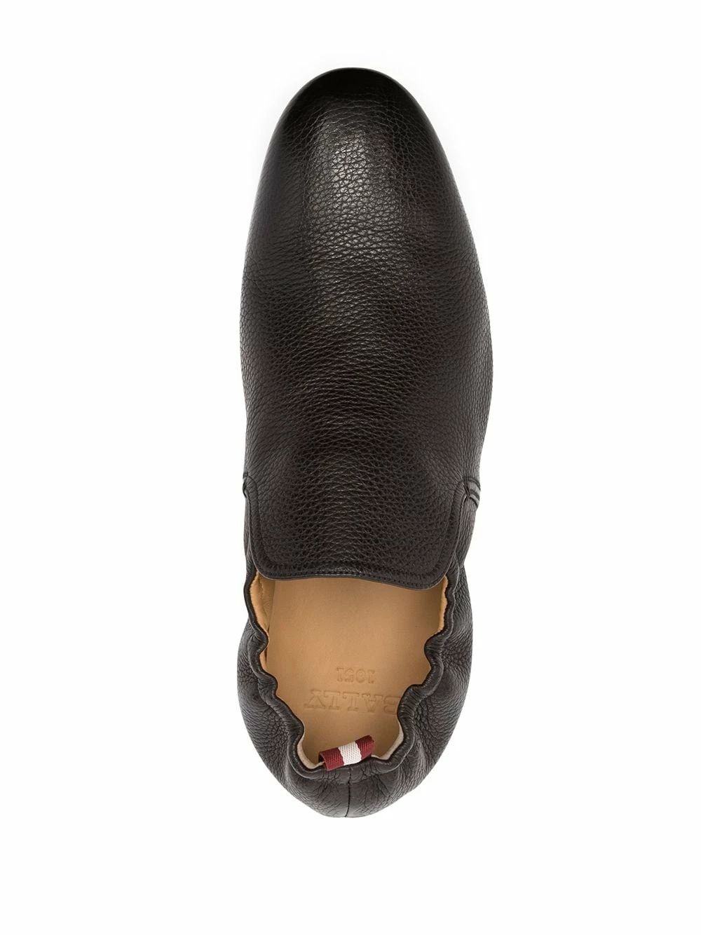 Ourlet élastiqué, semelle intérieure à logo, bout en amande. Matière : cuir.