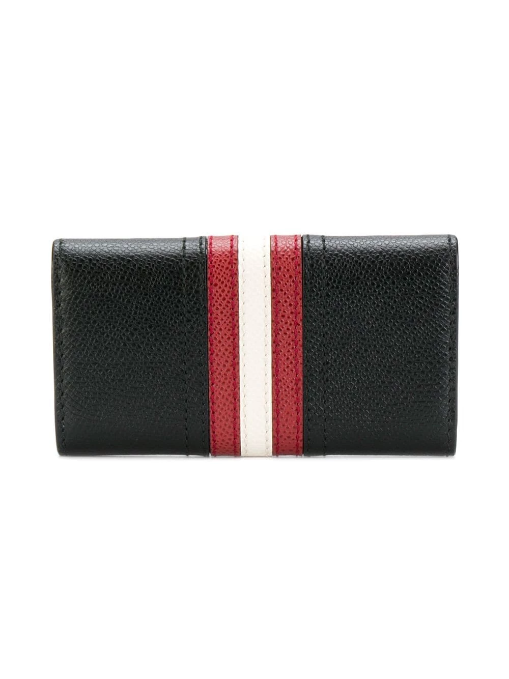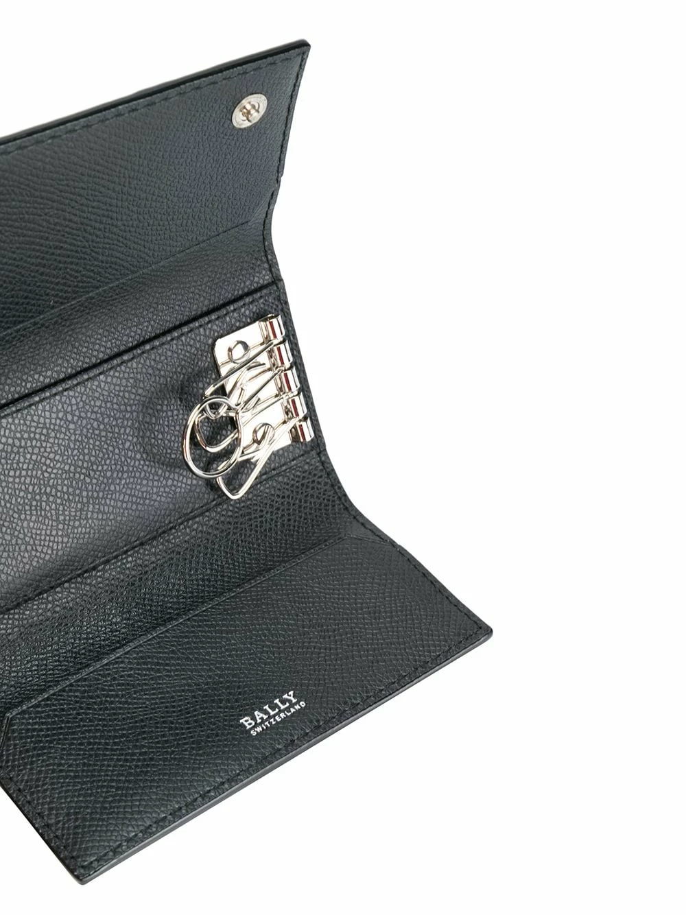 Porte-clés en cuir de veau noir et détail rayé rouge et blanc et rabat boutonné Bally.