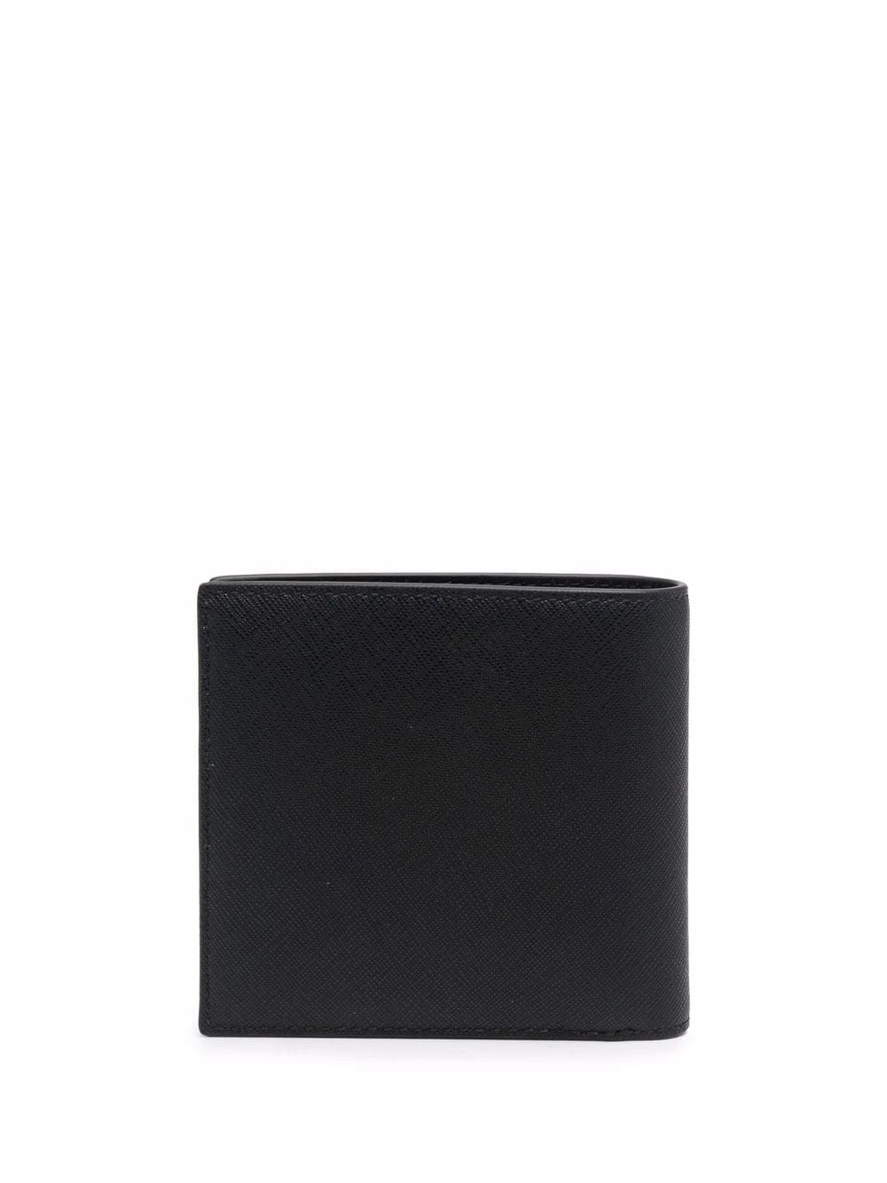Forme carrée, fentes pour carte, logo argenté. Matière : cuir.