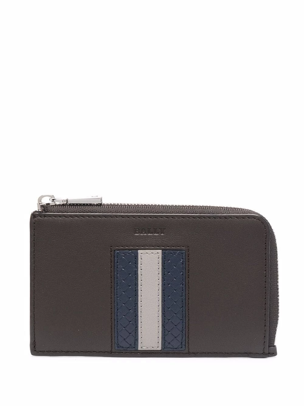 Texture grainée, logo embossé sur le devant, bordure rayée, matelassage à surpiqûres en losange, fermeture zippée tout autour, poche intérieure plaquée, logo intérieur embossé, doublure à logo imprimé. Matière : cuir.