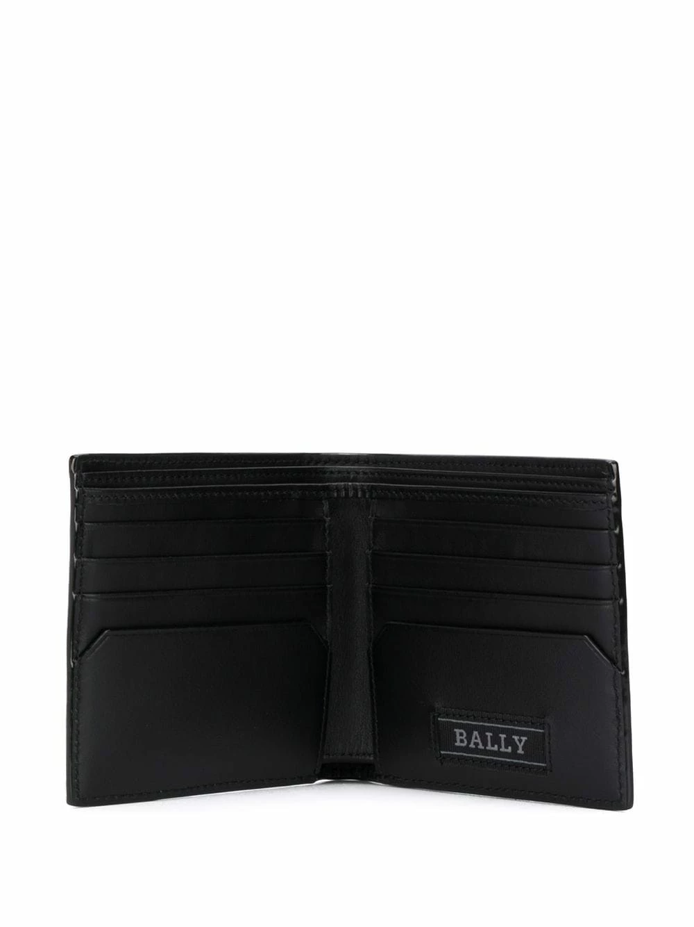 Portefeuille pliant à bande rayée en cuir Bally avec multiple note compartments et compartiments porte-cartes intérieurs. Couleur : noir.
