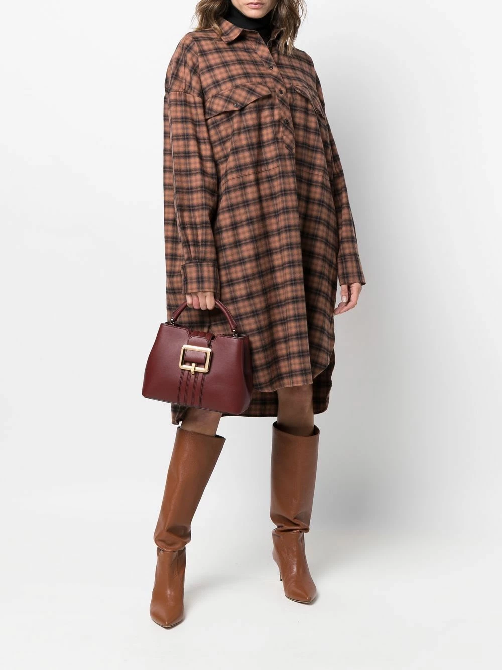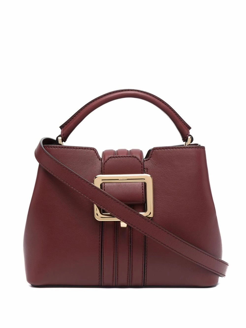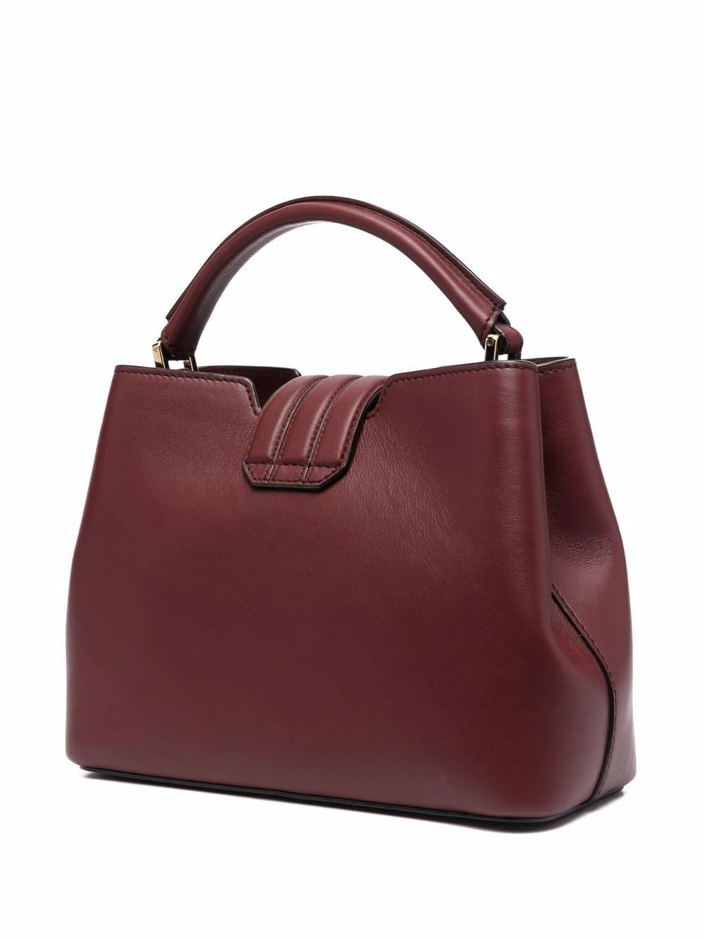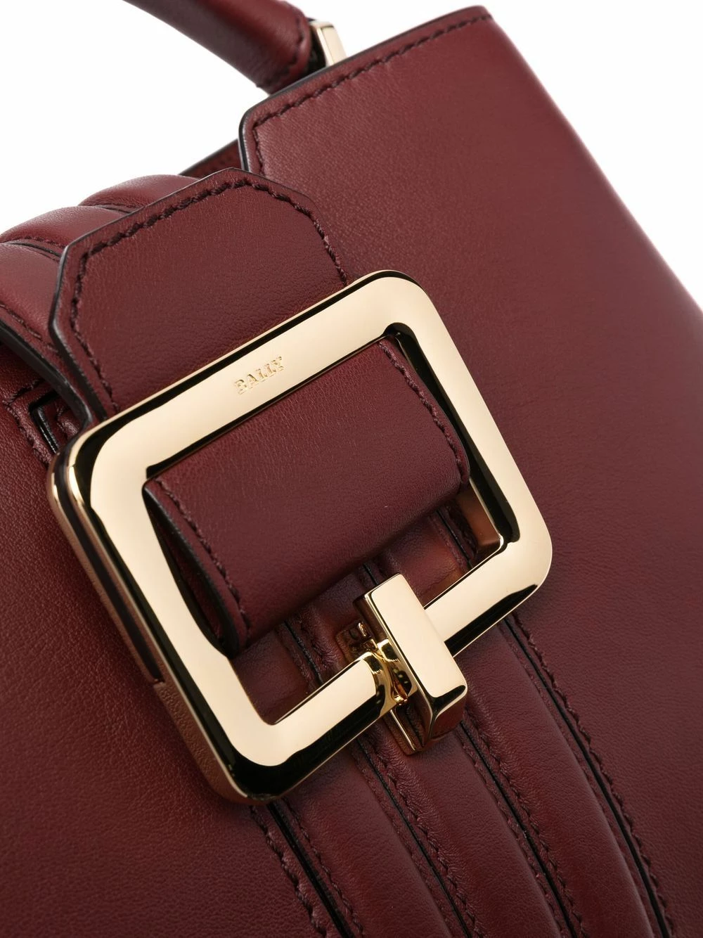 Fermeture à boucle dorée, bride porté épaule détachable et ajustable, anse arrondie, compartiment principal. Couleur : rouge. Matière : cuir.