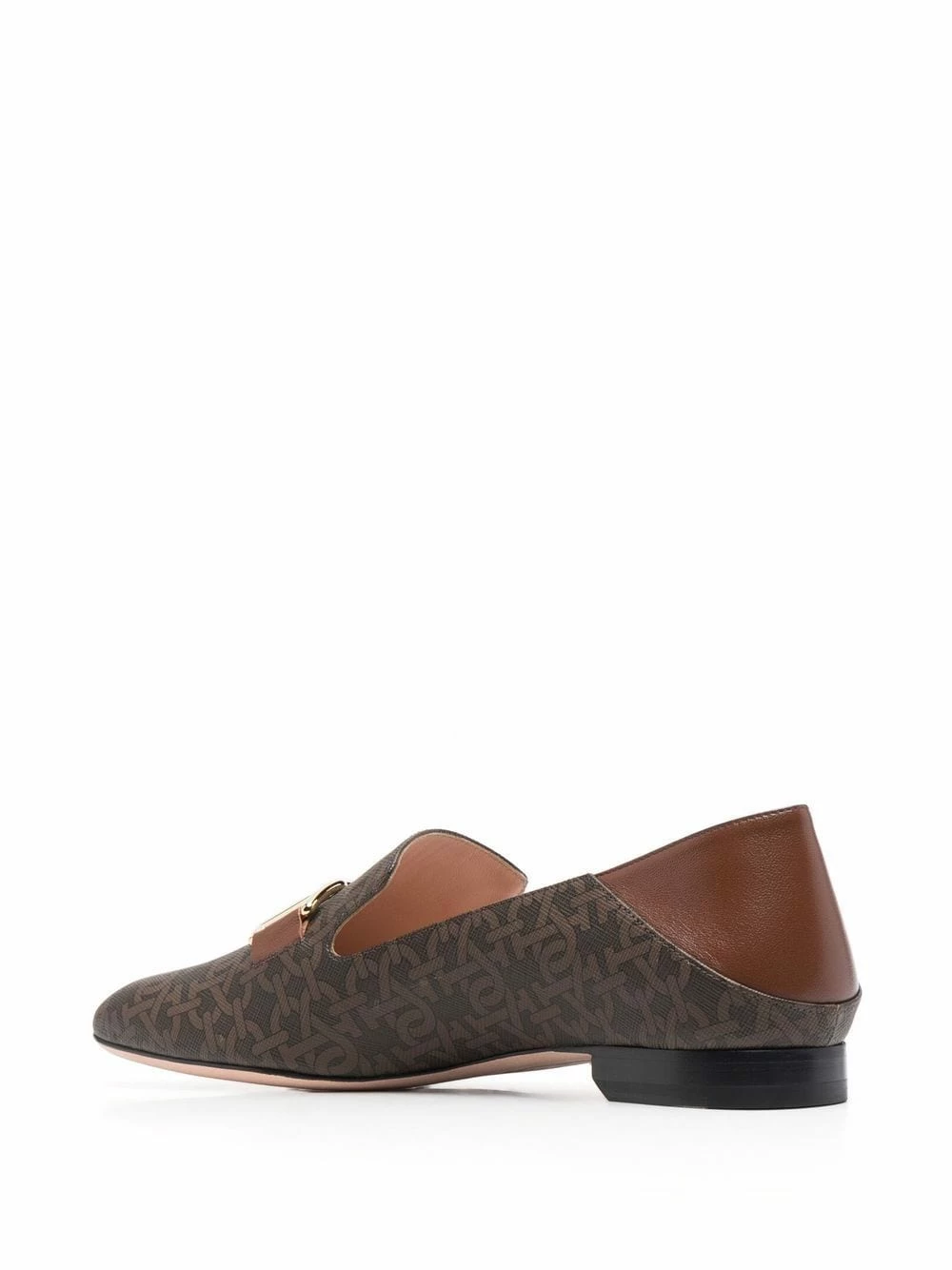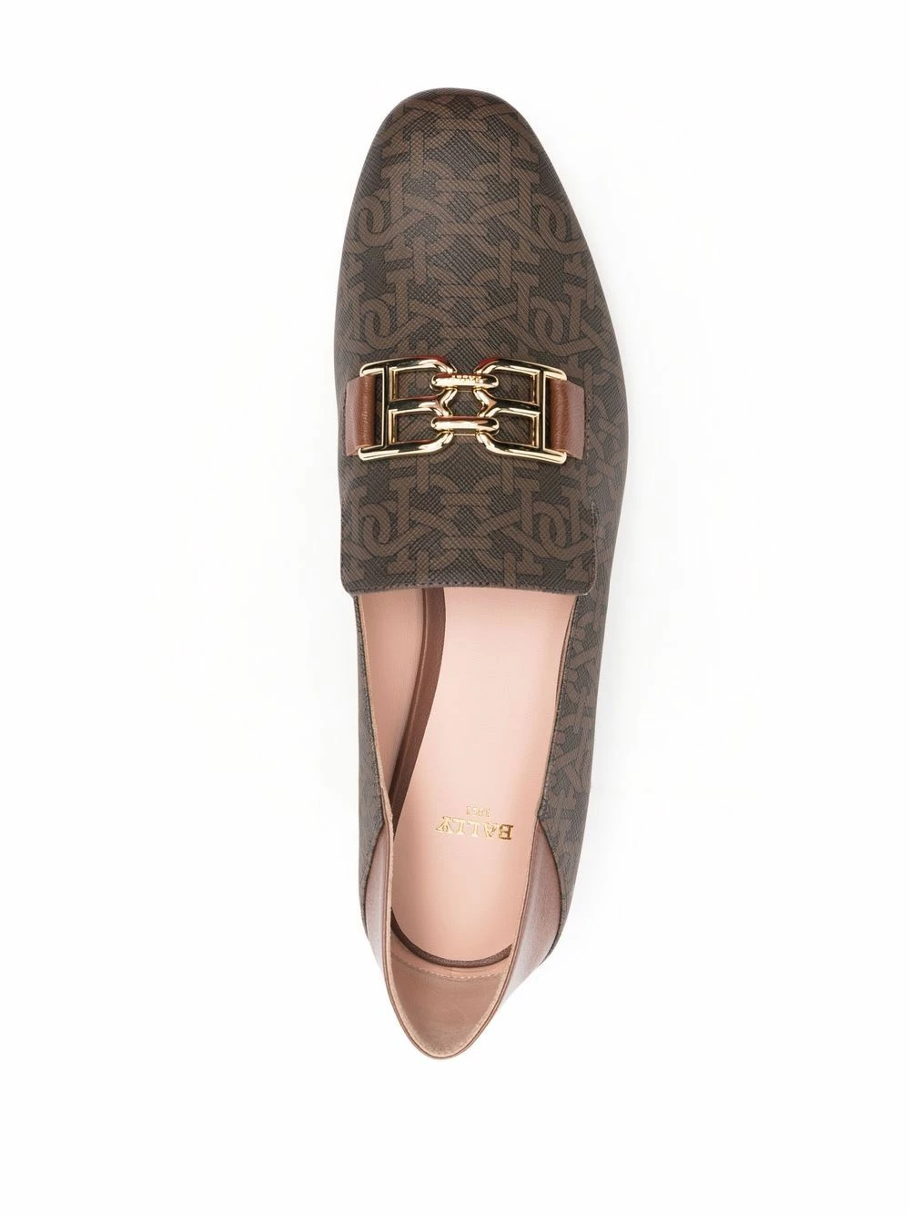 Imprimé monogrammé, bout rond, plaque logo dorée, talon bottier. Couleur : marron. Matière : cuir.