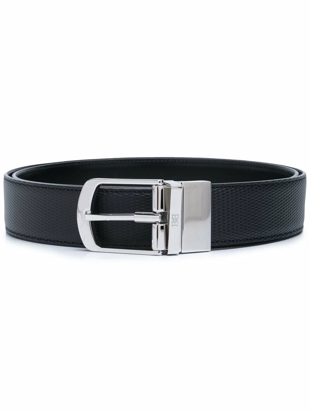 Fini texturé, logo gravé, fermeture à boucle argentée, trous percés, taille ajustable. Couleur : noir. Matière : cuir.