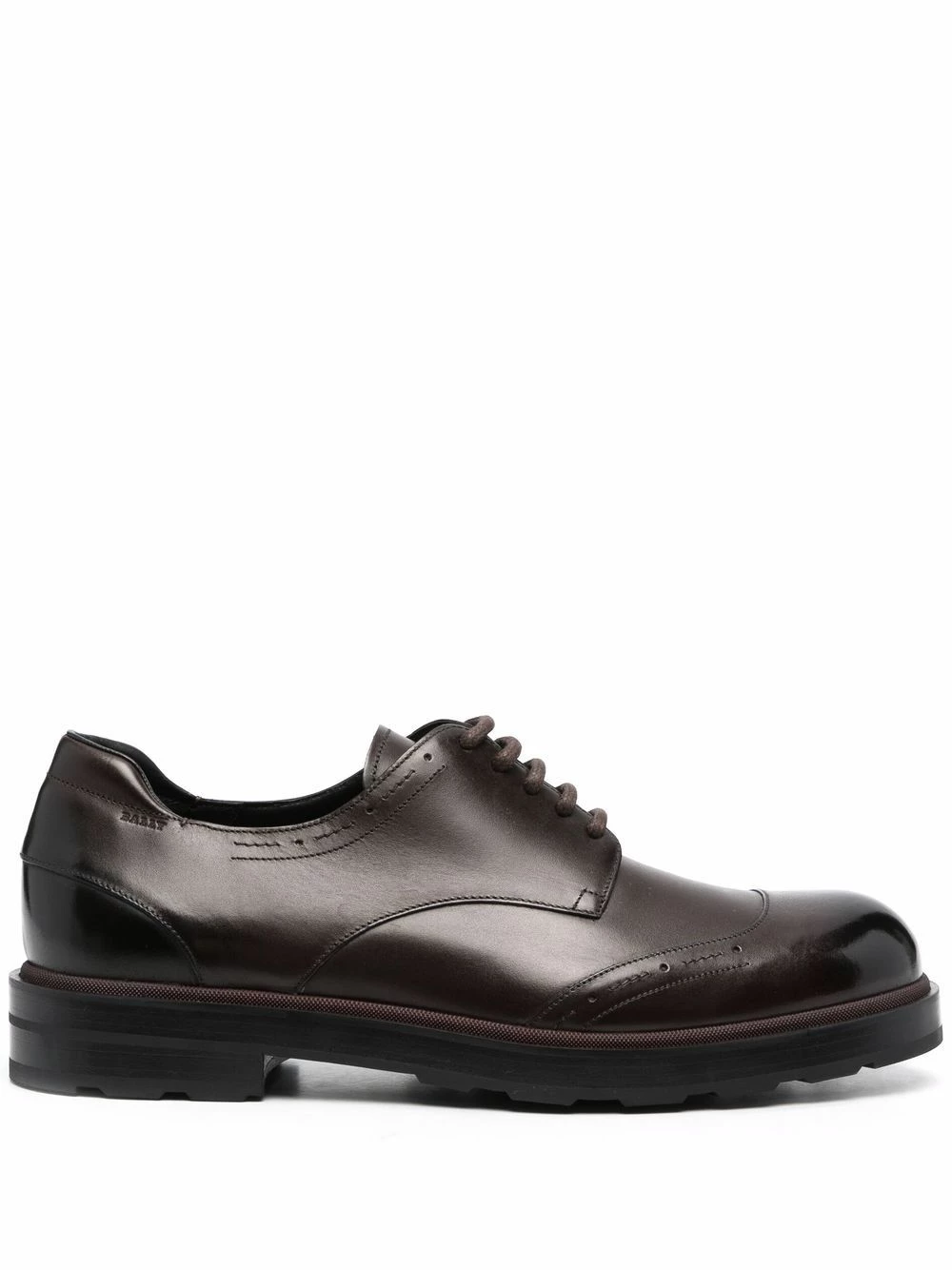 Effet poli, bout rond, fermeture à lacer sur le devant, semelle intérieure à logo, semelle plate en caoutchouc. Couleur : marron. Matière : cuir.
