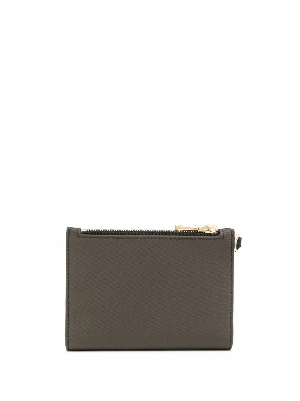 Patch logo sur le devant, dessus à rabat avec bouton pression, fermeture zippée sur le dessus, compartiments intérieurs pour carte, compartiment à billets. Matière : cuir.
