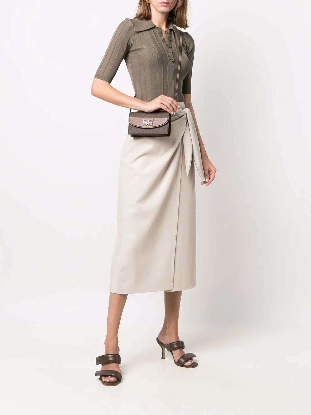 Motif monogrammé, plaque logo dorée, rabat sur le dessus, bride porté épaule ajustable, fermeture magnétique. Couleur : marron. Matière : cuir.