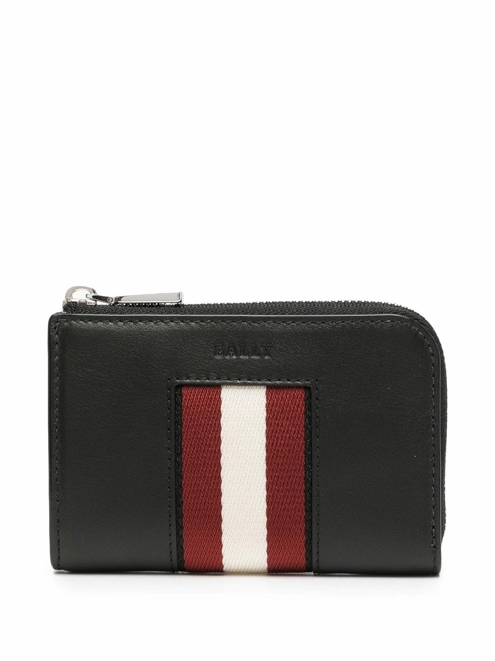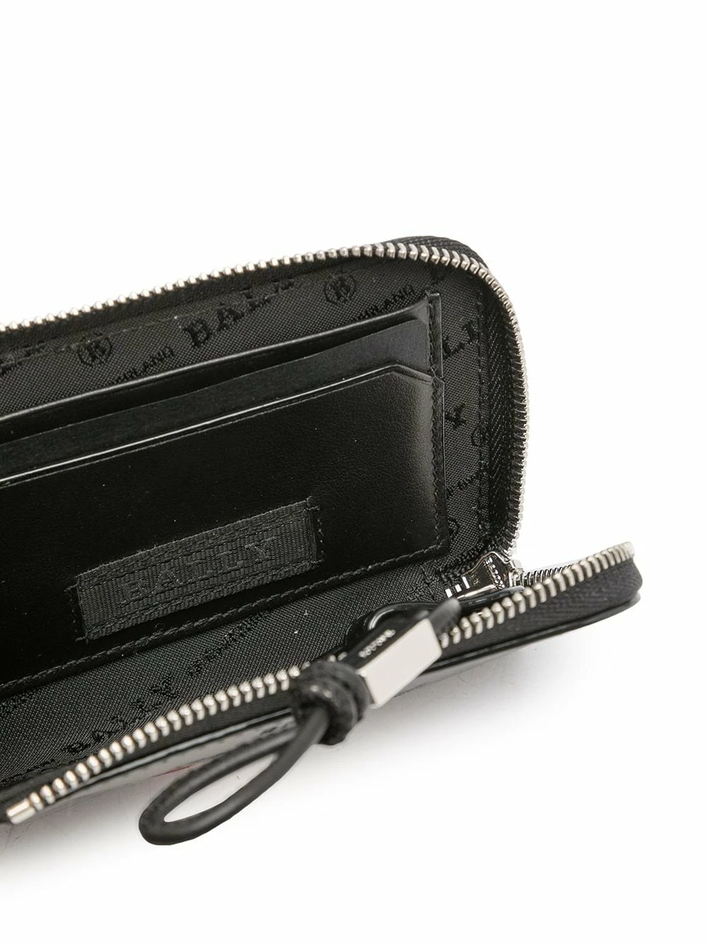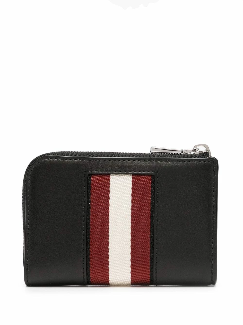 Détails rayés, logo gravé, fermeture zippée tout autour, doublure à logo imprimé, compartiments intérieurs pour carte. Couleur : noir. Matière : cuir.