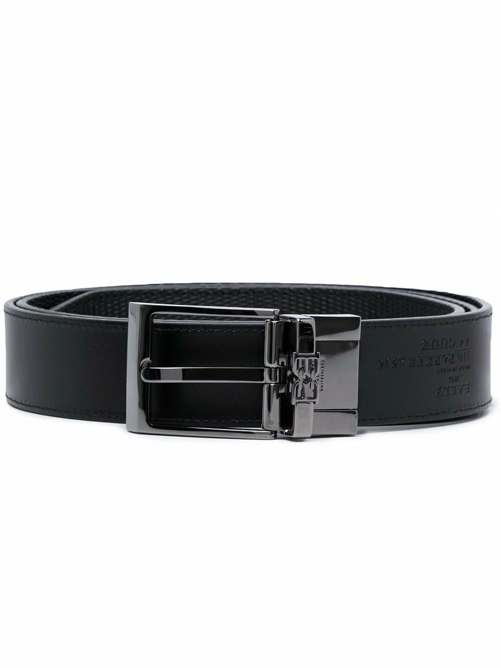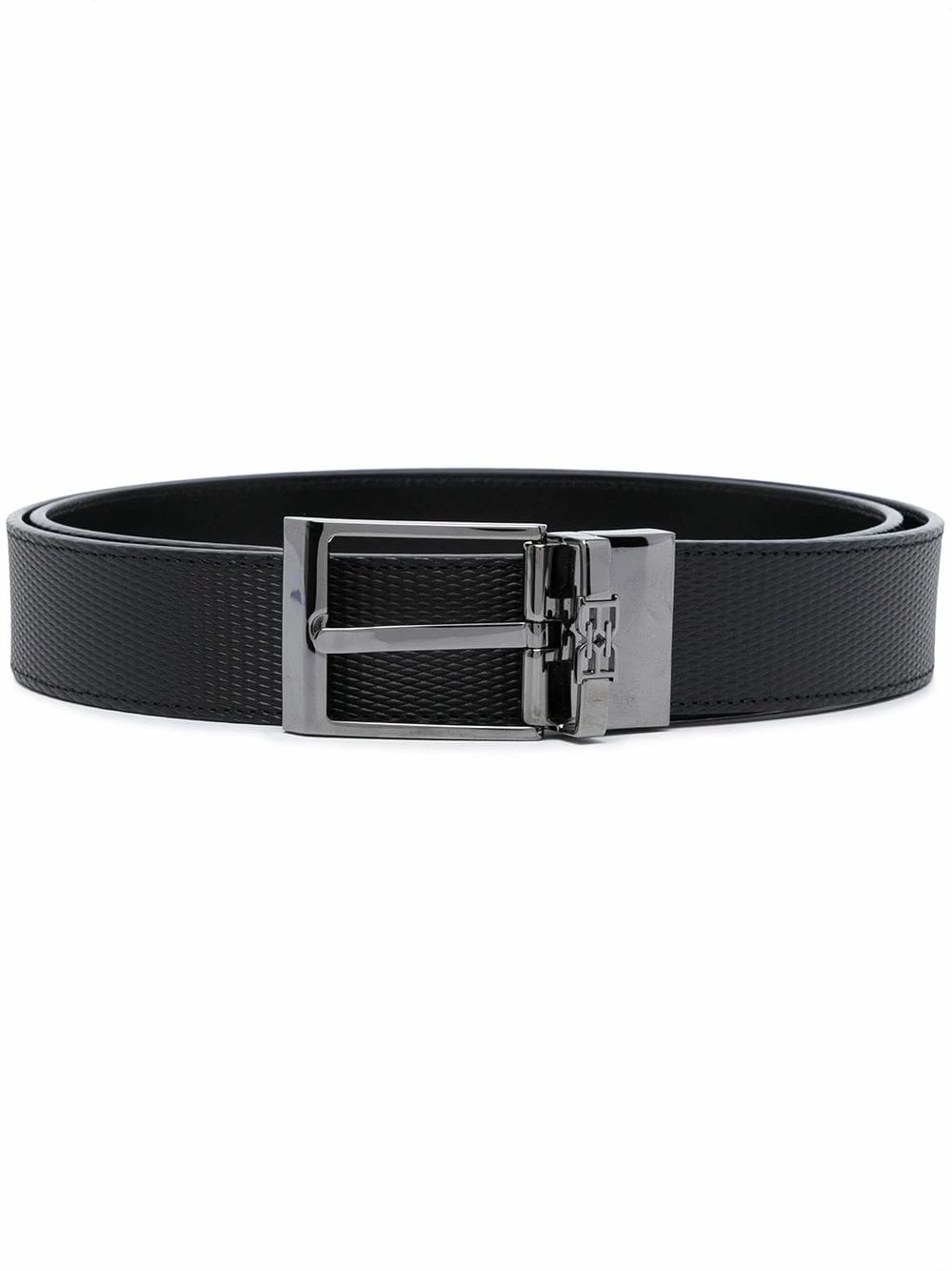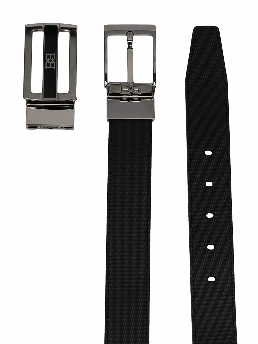 Design réversible, fini texturé, fermeture à boucle logo, détails de perforation, taille ajustable. Couleur : noir. Matière : cuir.