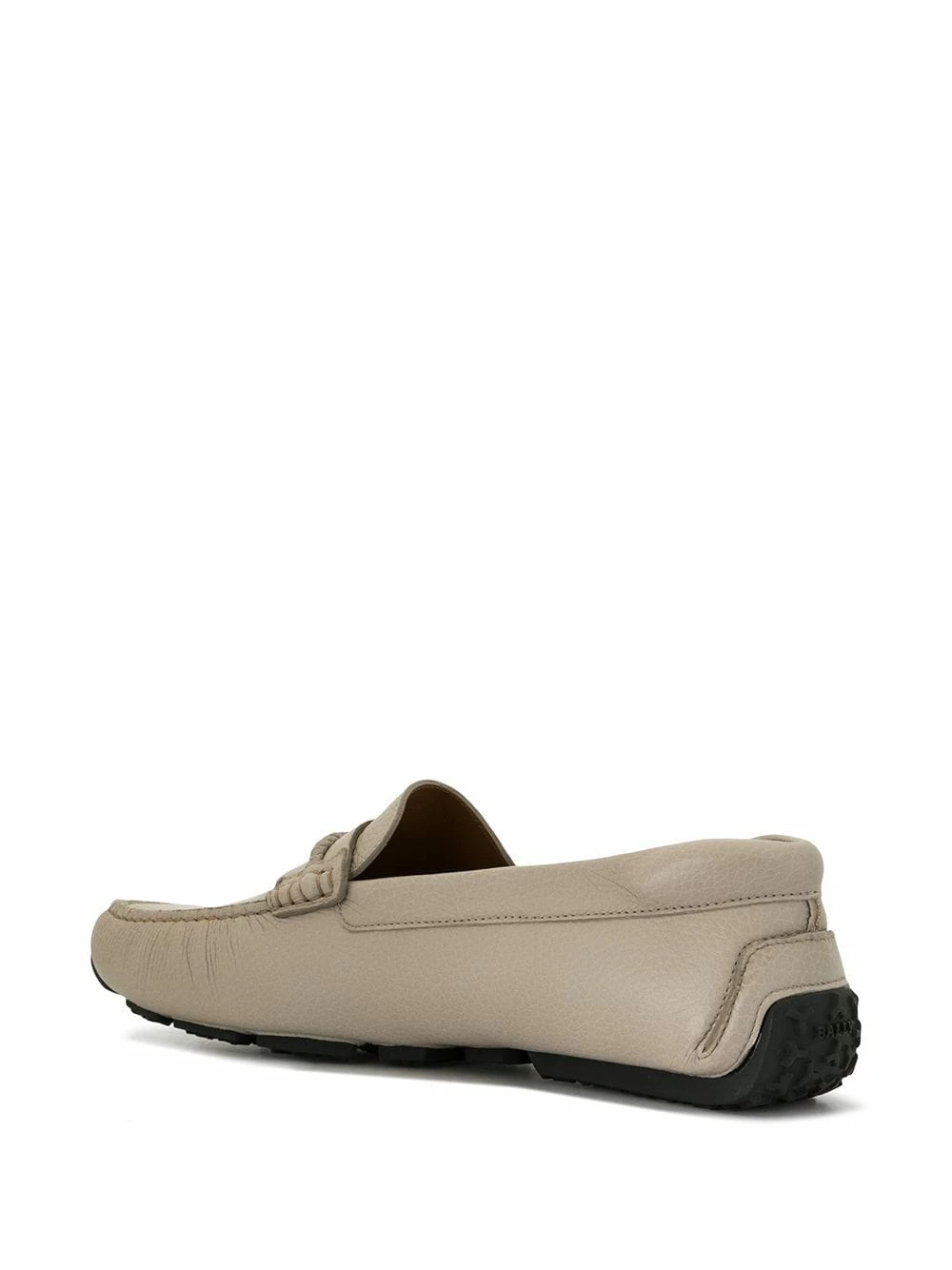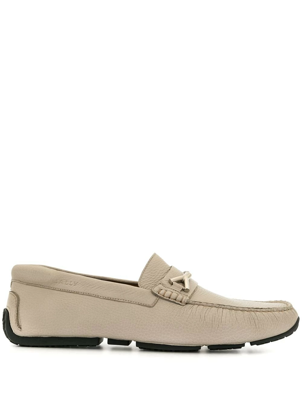 Mocassins en cuir texturé Bally avec brides entrelacées, plaque logo argentée, détail de coutures visibles, bout rond, semelle intérieure à logo et semelle crantée en caoutchouc.