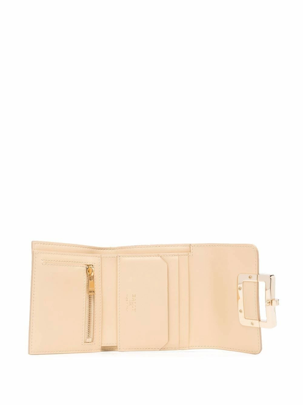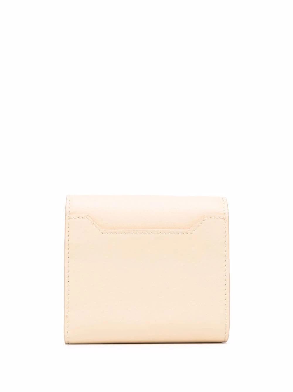 Finitions en métal doré, fermeture à loquet, compartiments intérieurs pour carte, compartiment à billets, poche ticket. Matière : cuir.